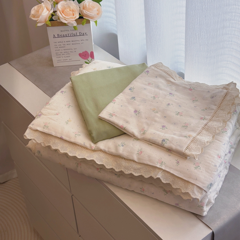 当前位置: 91家纺网 > 商品网购 > 床品套件 > 四件套 > 夏被四件套 > 黛馨 2025春夏新款全棉纯棉A类双层纱工艺款夏被夏凉被空调被四件套蕾丝款 薄荷初夏