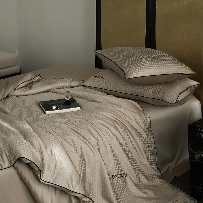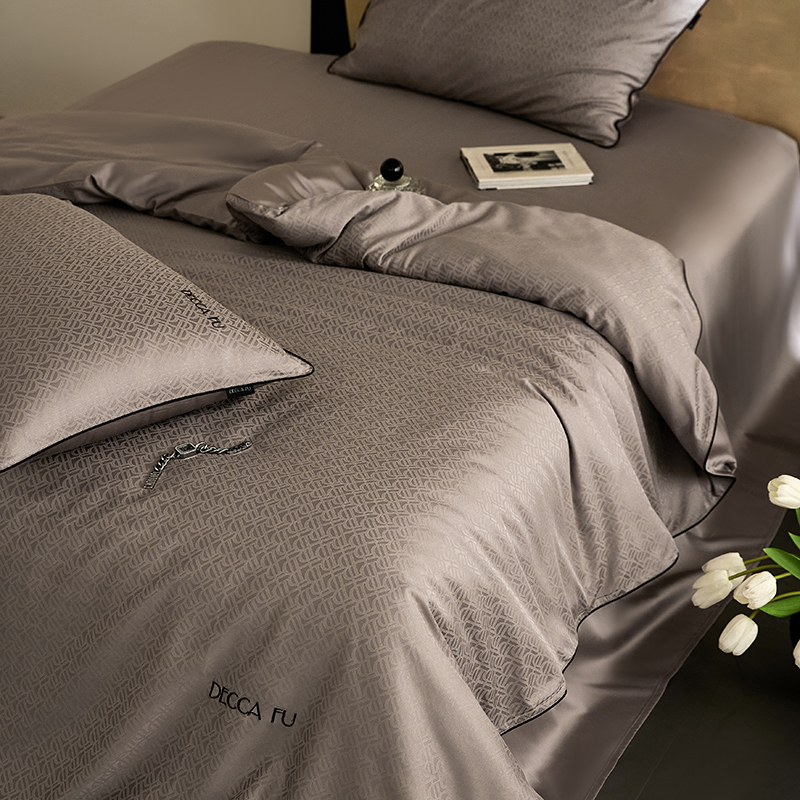 当前位置: 91家纺网 > 商品网购 > 床品套件 > 四件套 > 提花四件套 > 群鹿蚕丝羽绒馆 2025新款天丝棉提花银线刺绣嵌条麻绳工艺-铂金简奢款四件套 铂金简奢-佳觉-黑加仑紫