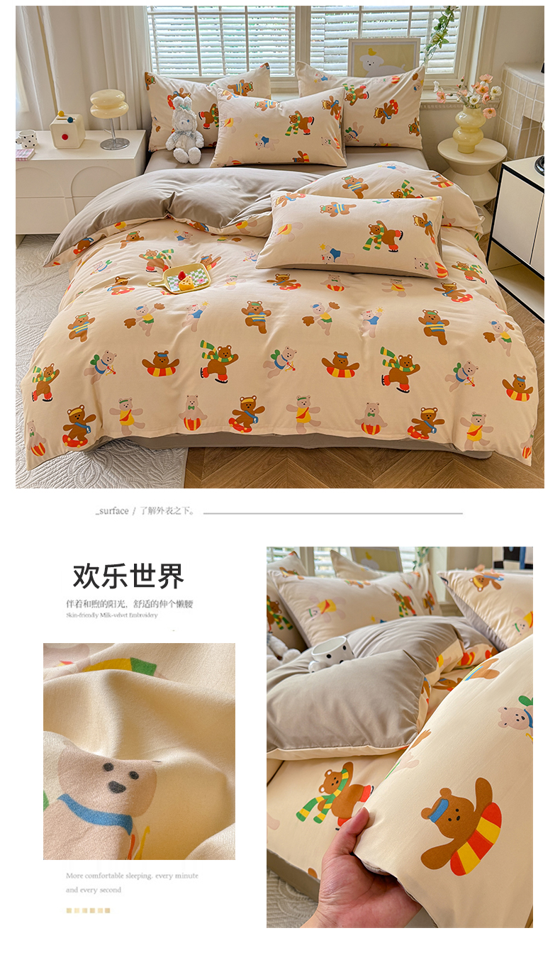 多品家纺 2025新款超柔云感水洗棉学生单被套款 欢乐世界