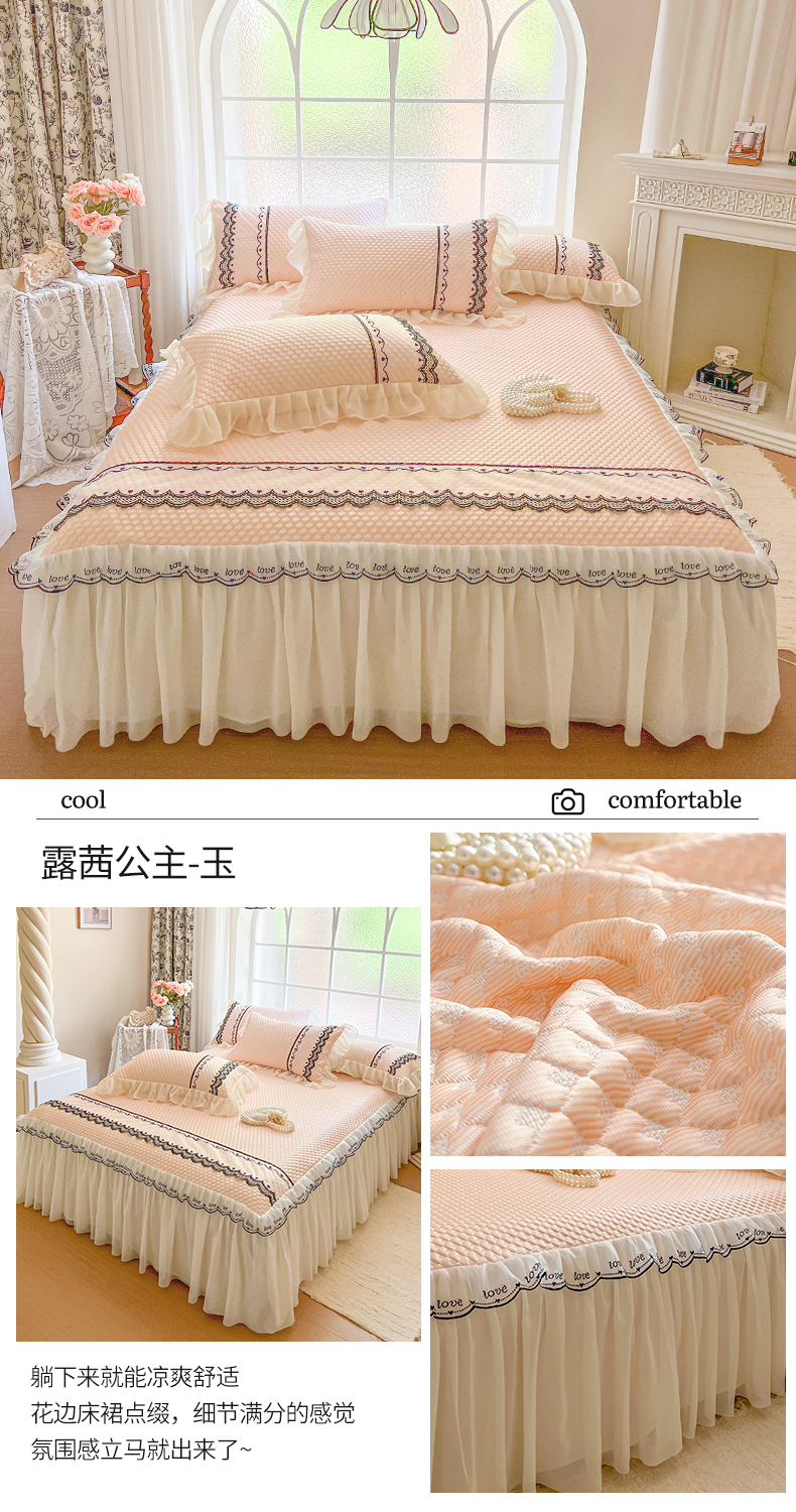 (总)网红馆(ck家纺) 2025新款凉豆豆床裙款凉席三件套-露茜公主