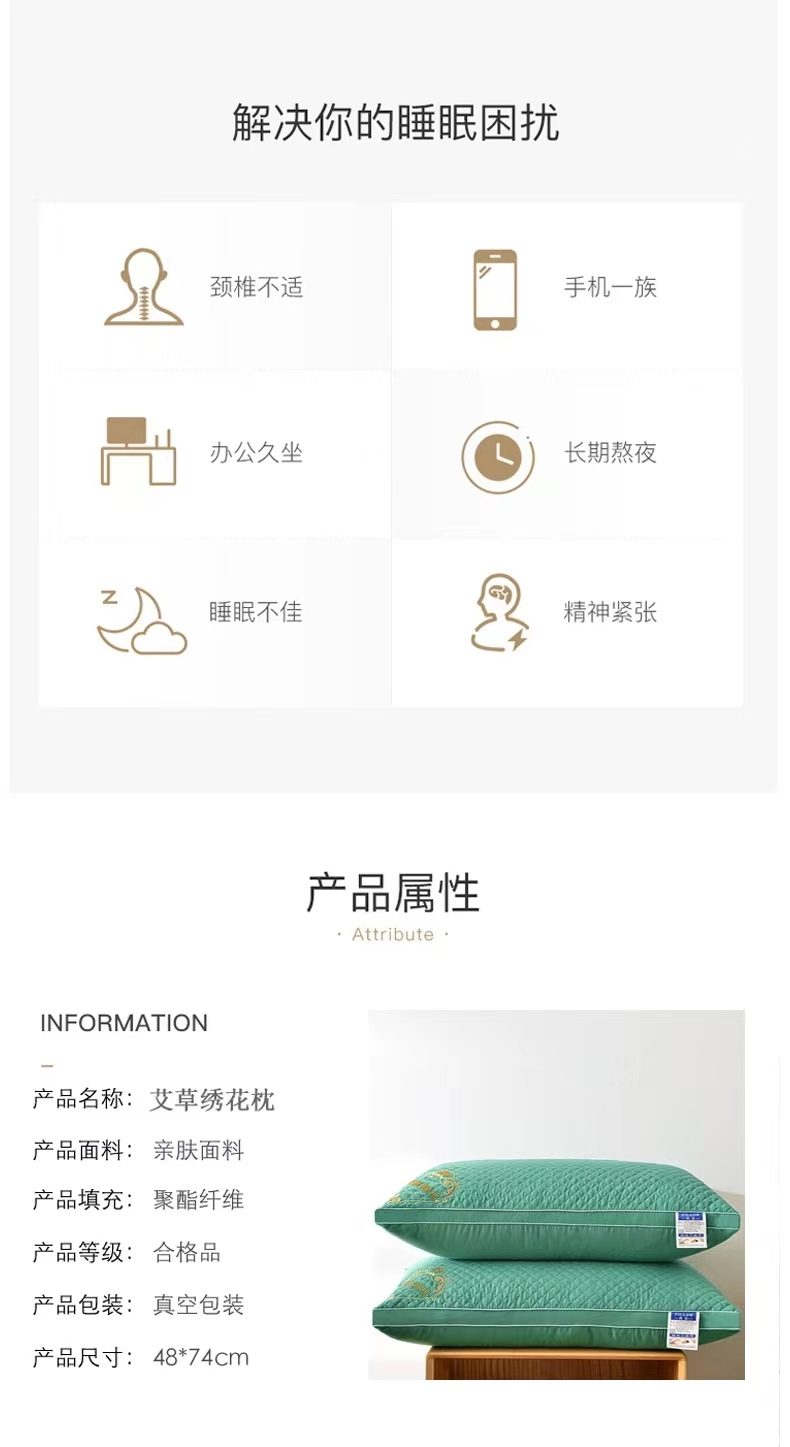 商品名称:(总)雅晨枕芯 2025新款艾草美眠单双边枕成人家用羽丝棉枕头枕芯学生宿舍