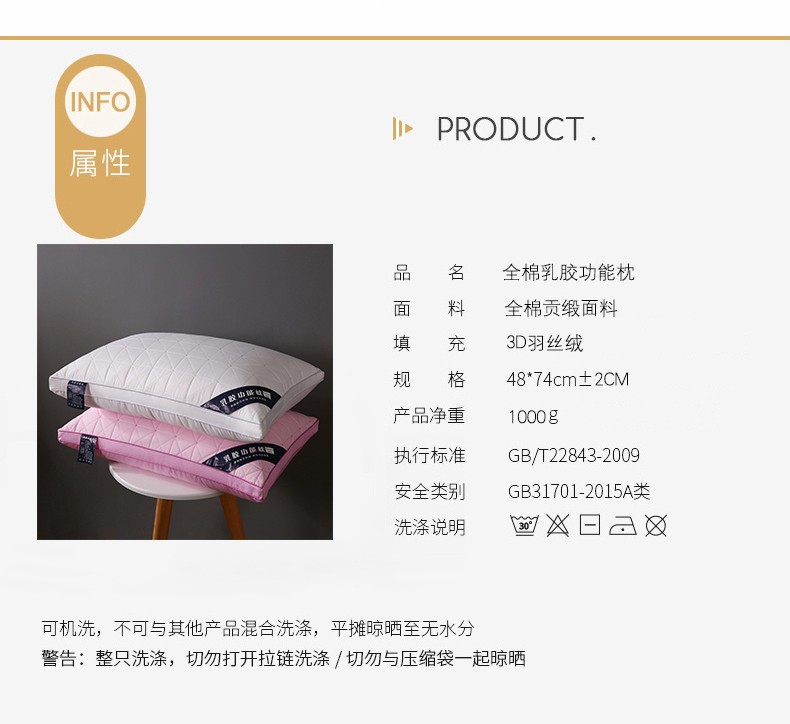 当前位置: 91家纺网 > 商品网购 > 枕头/枕芯/保健枕/颈椎枕 > 普通枕芯 > 雅晨枕芯 2025新款全棉绗缝乳胶枕立体护颈枕芯羽丝绒助眠枕头保健功能枕 全棉乳胶功能枕-粉色 48*74cm/只