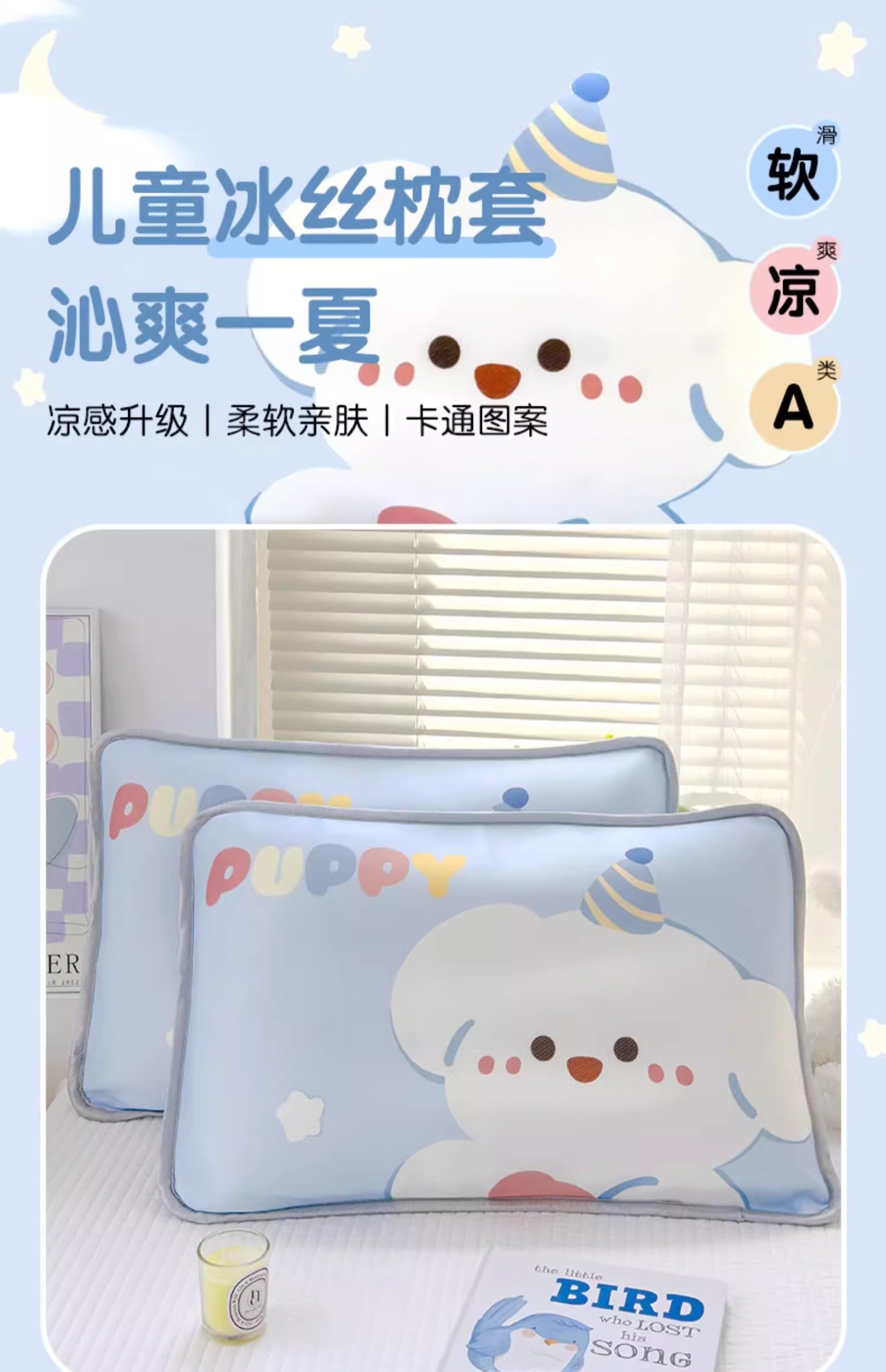 商品名称:丽美人家纺 2025新款儿童冰丝枕套 快乐汪