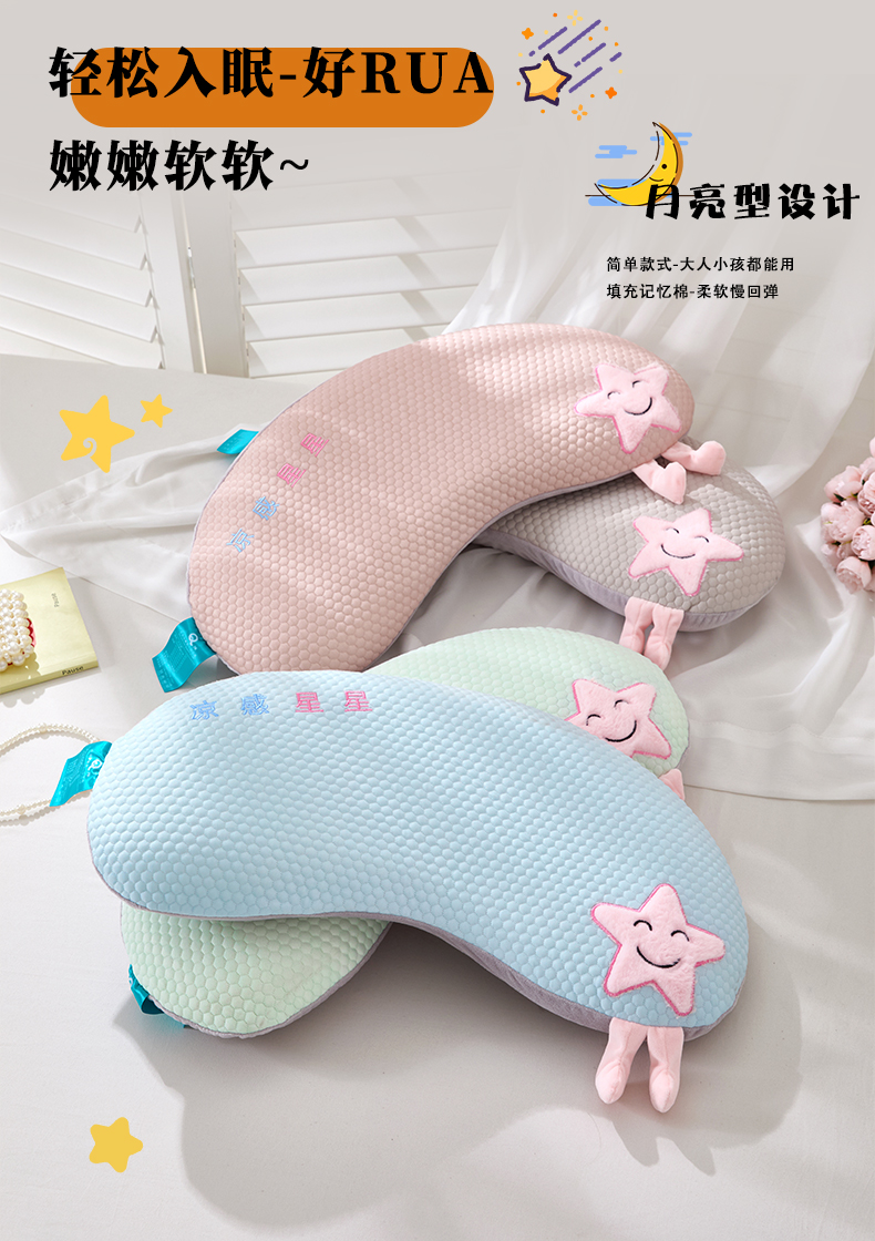当前位置: 91家纺网 > 商品网购 > 枕头/枕芯/保健枕/颈椎枕 > 芯洲 2025新款月牙形记忆枕卡通可爱星星萌趣夏季冰豆豆抱枕四季可用枕头枕芯-星心相印 星心相印-灰 25x60cm/只