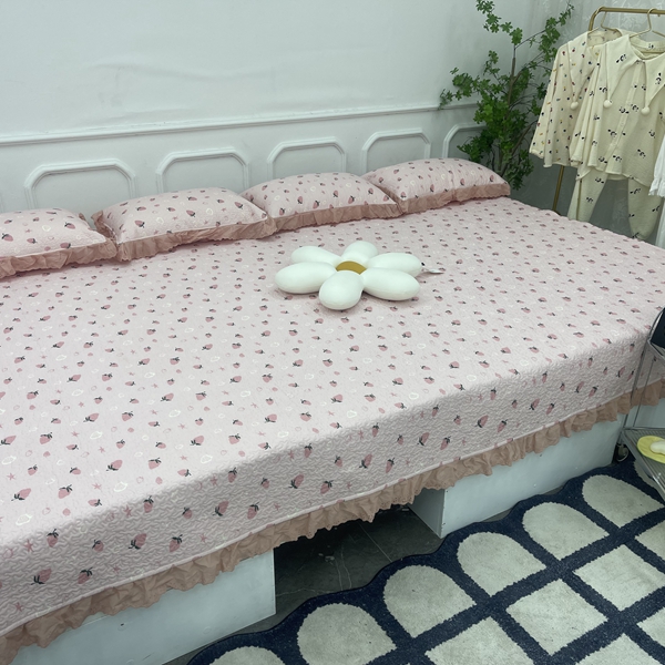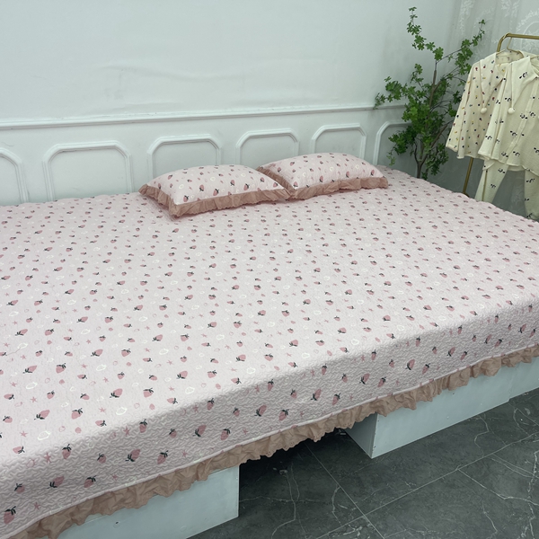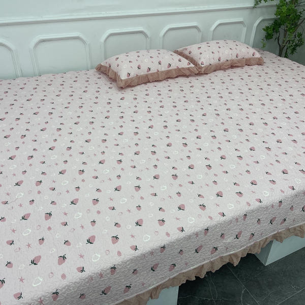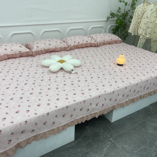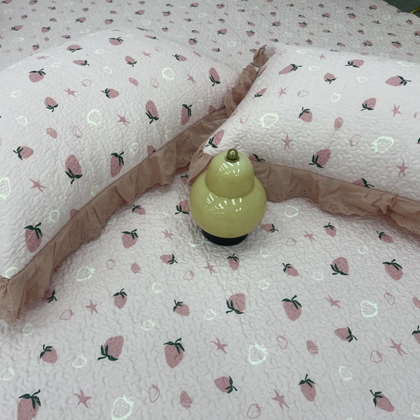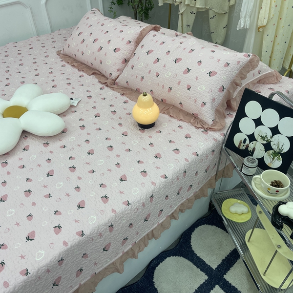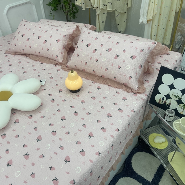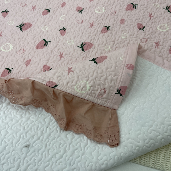 商品名称:禧瑞谷 2025新款全棉纯棉双层花边绗缝夹棉榻榻米支持定制农村大炕盖 粉底草莓