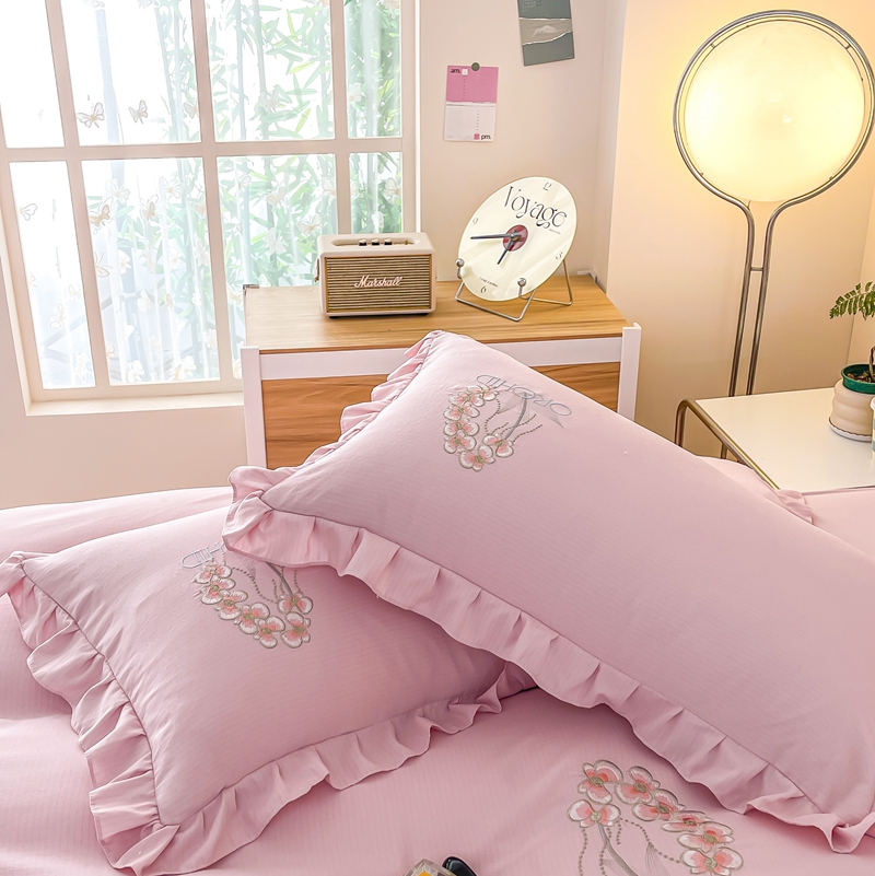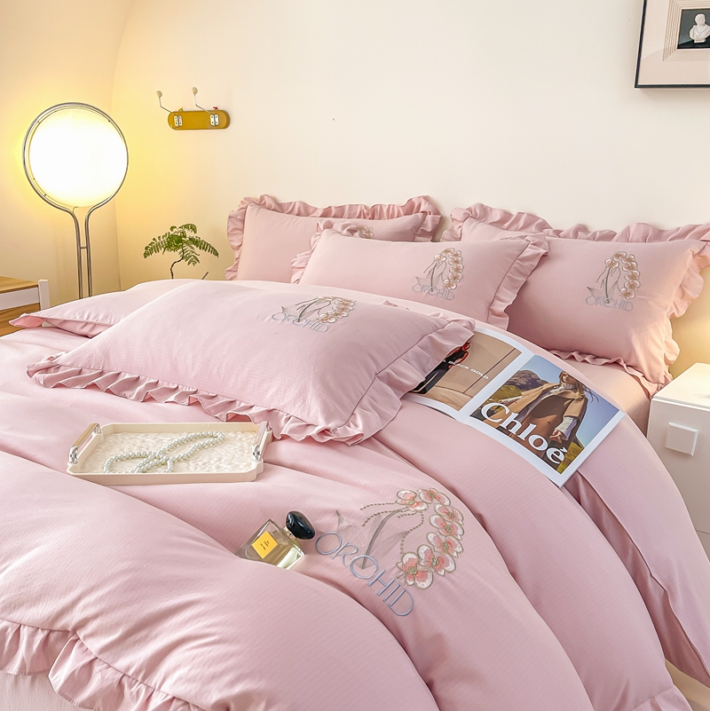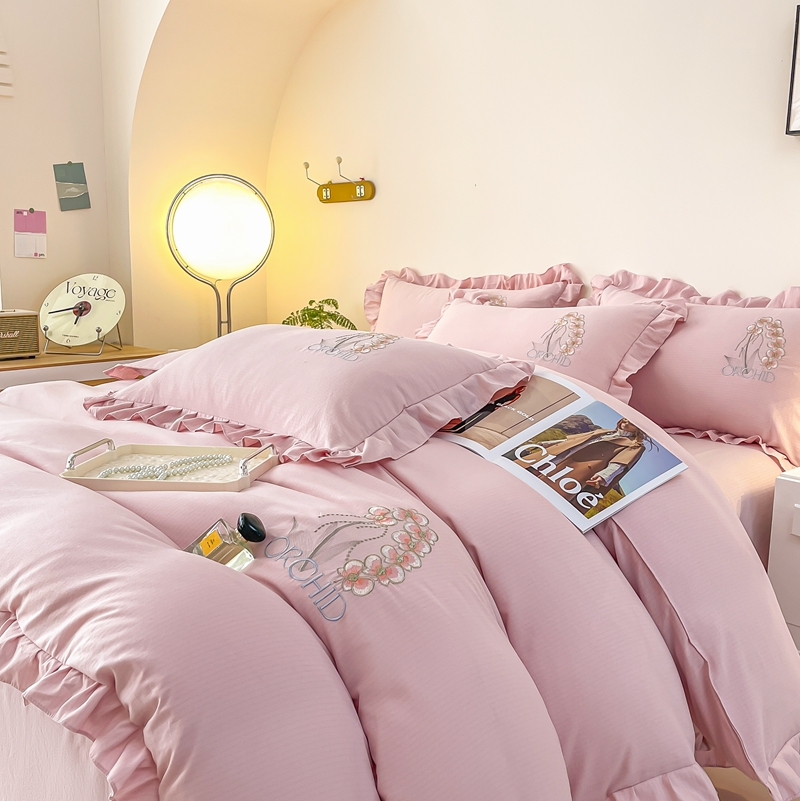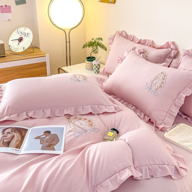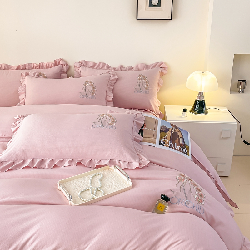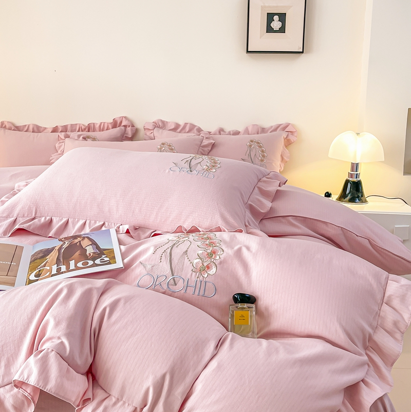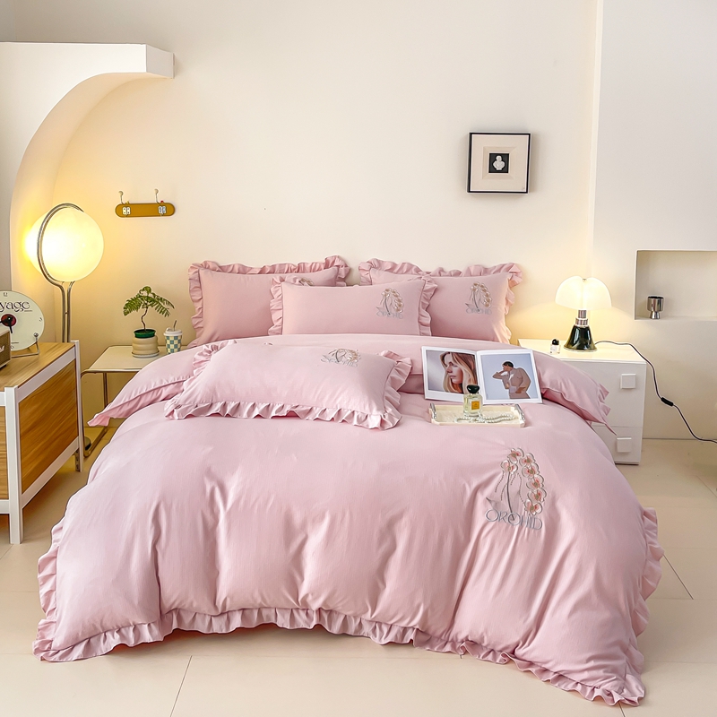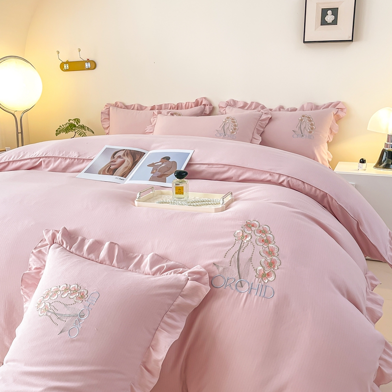 商品名称:梓之赫2025新款竹纤棉绣花四件套 绽放-樱花粉