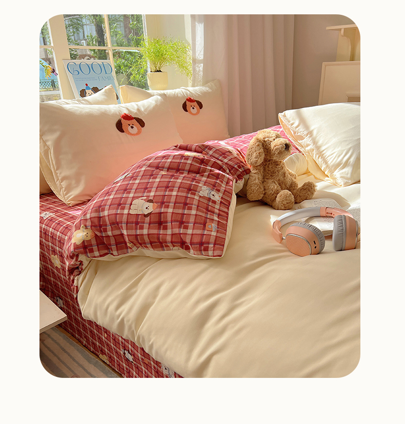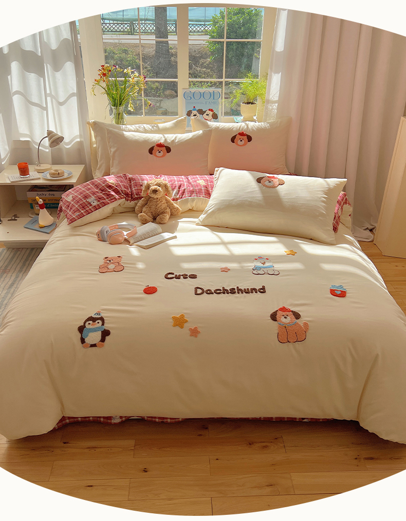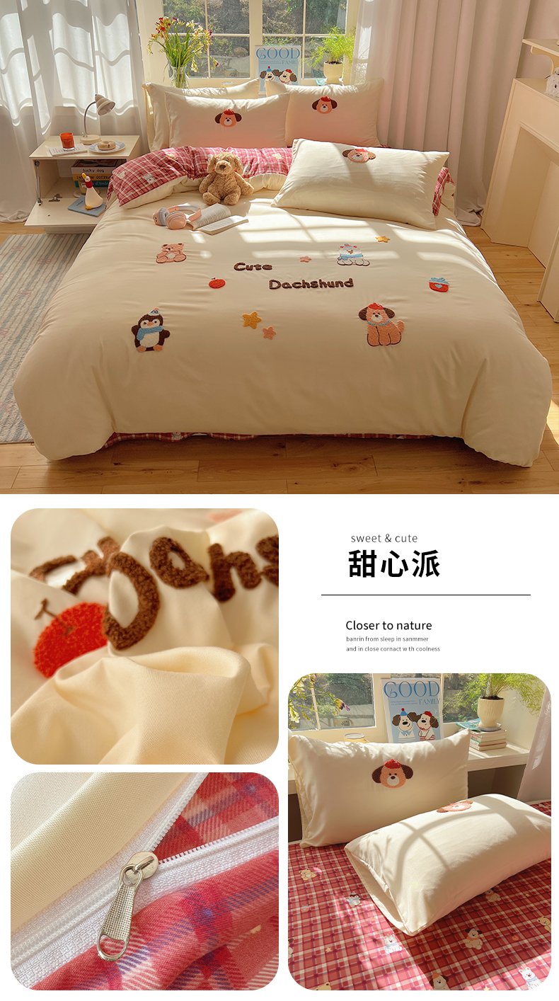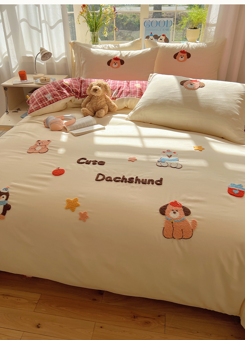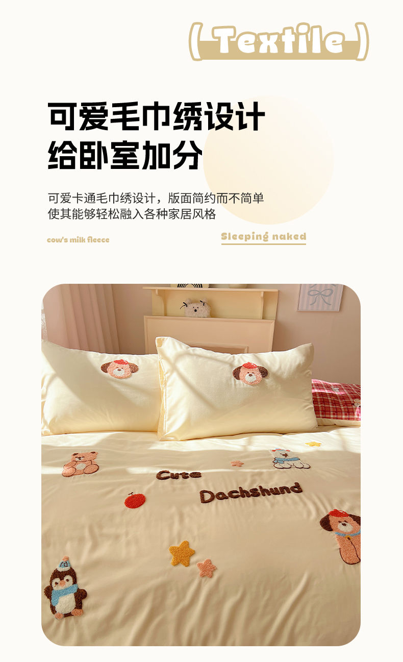 当前位置: 91家纺网 > 商品网购 > 床品套件 > 四件套 > 水洗棉四件套 > 韩都家居 2025新款卡通软萌水洗棉毛巾绣四件套 甜心派