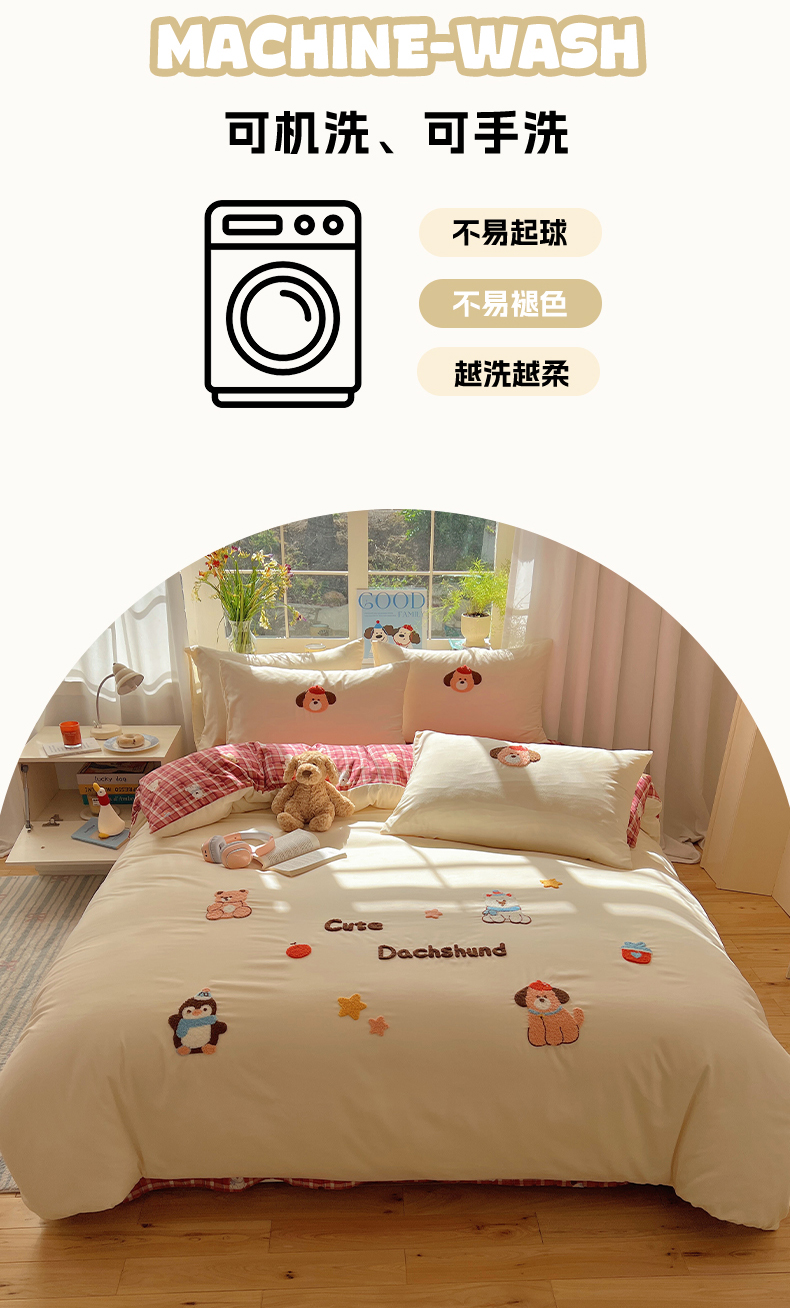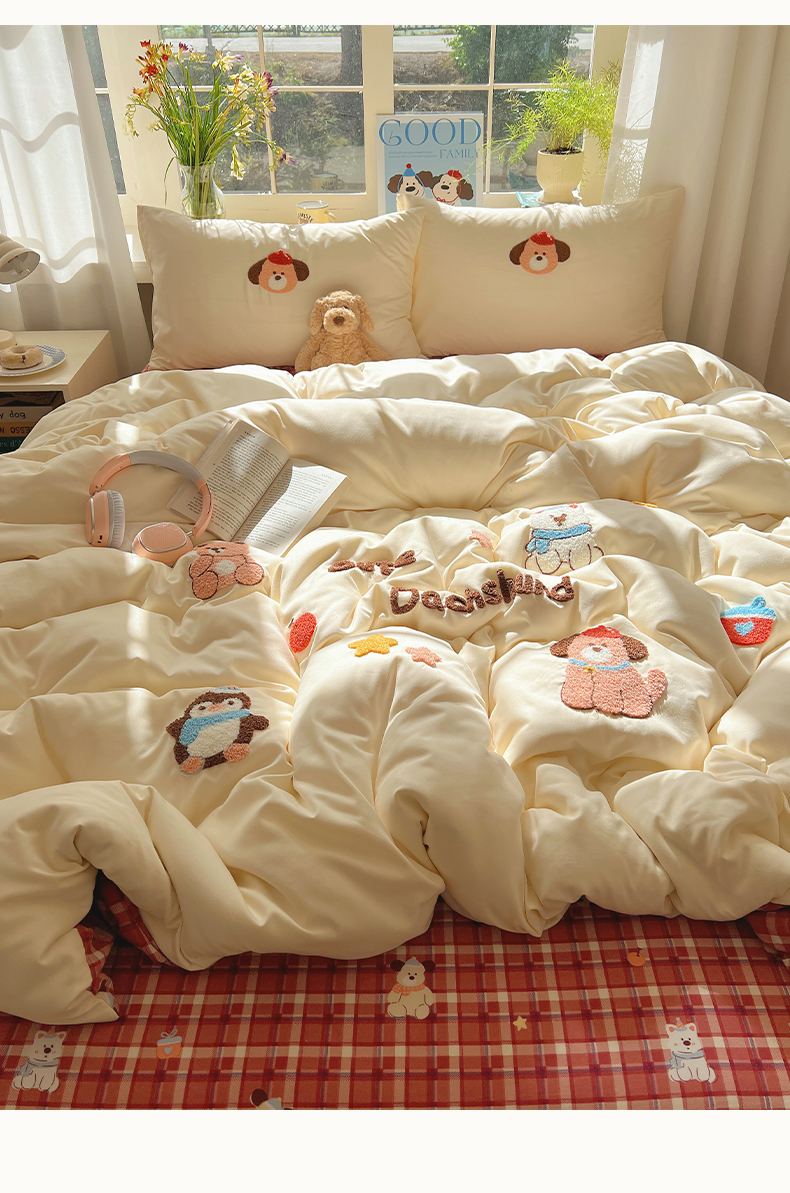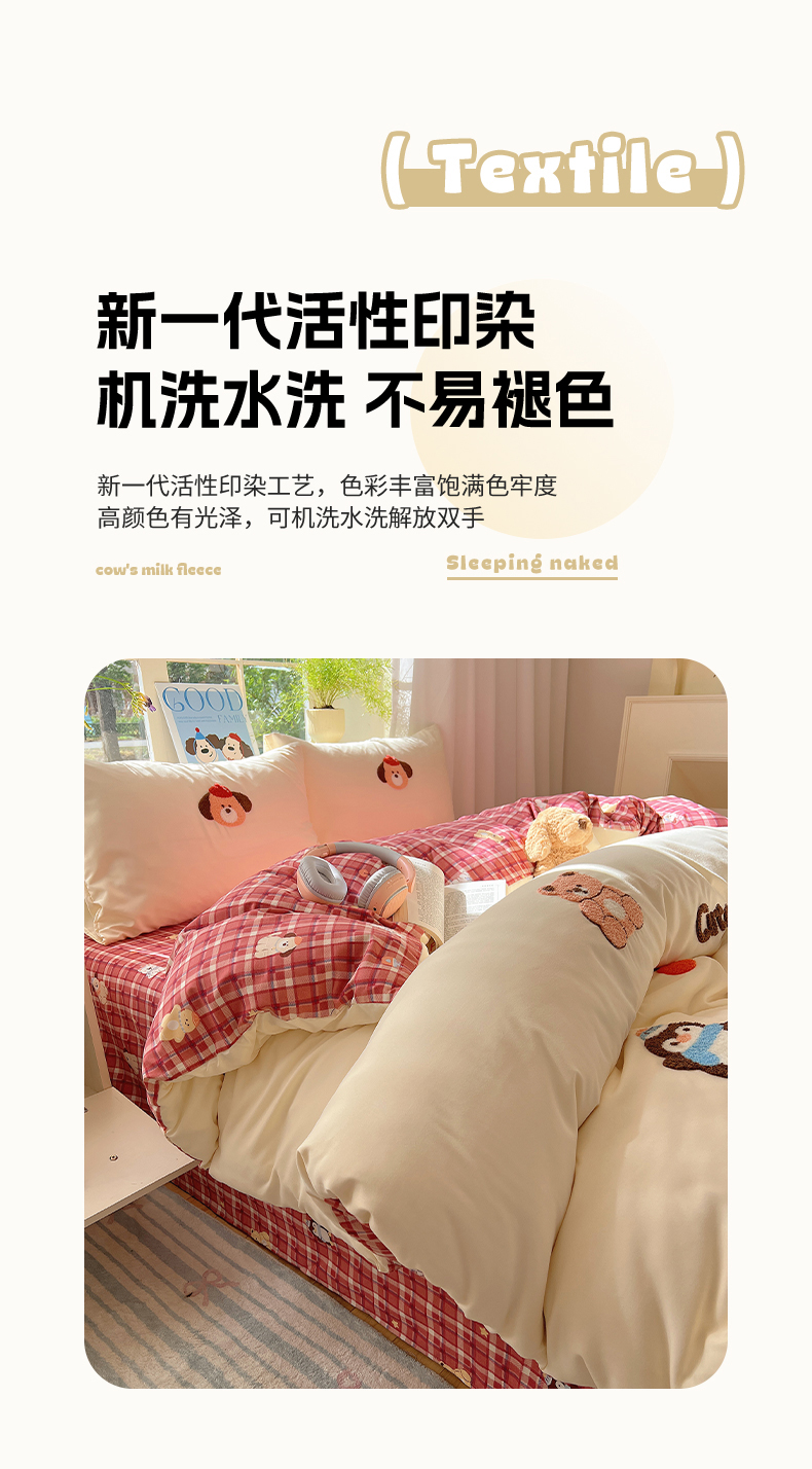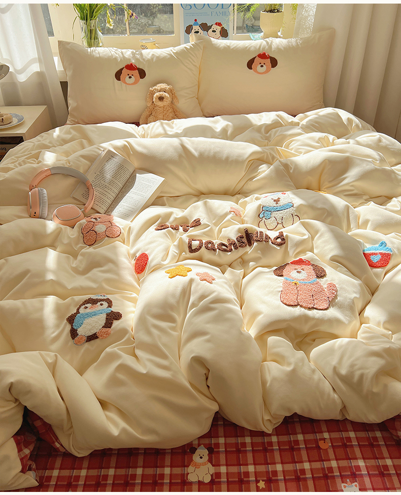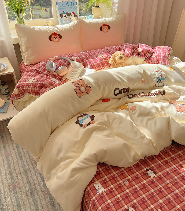 当前位置: 91家纺网 > 商品网购 > 床品套件 > 四件套 > 水洗棉四件套 > 韩都家居 2025新款卡通软萌水洗棉毛巾绣四件套 甜心派