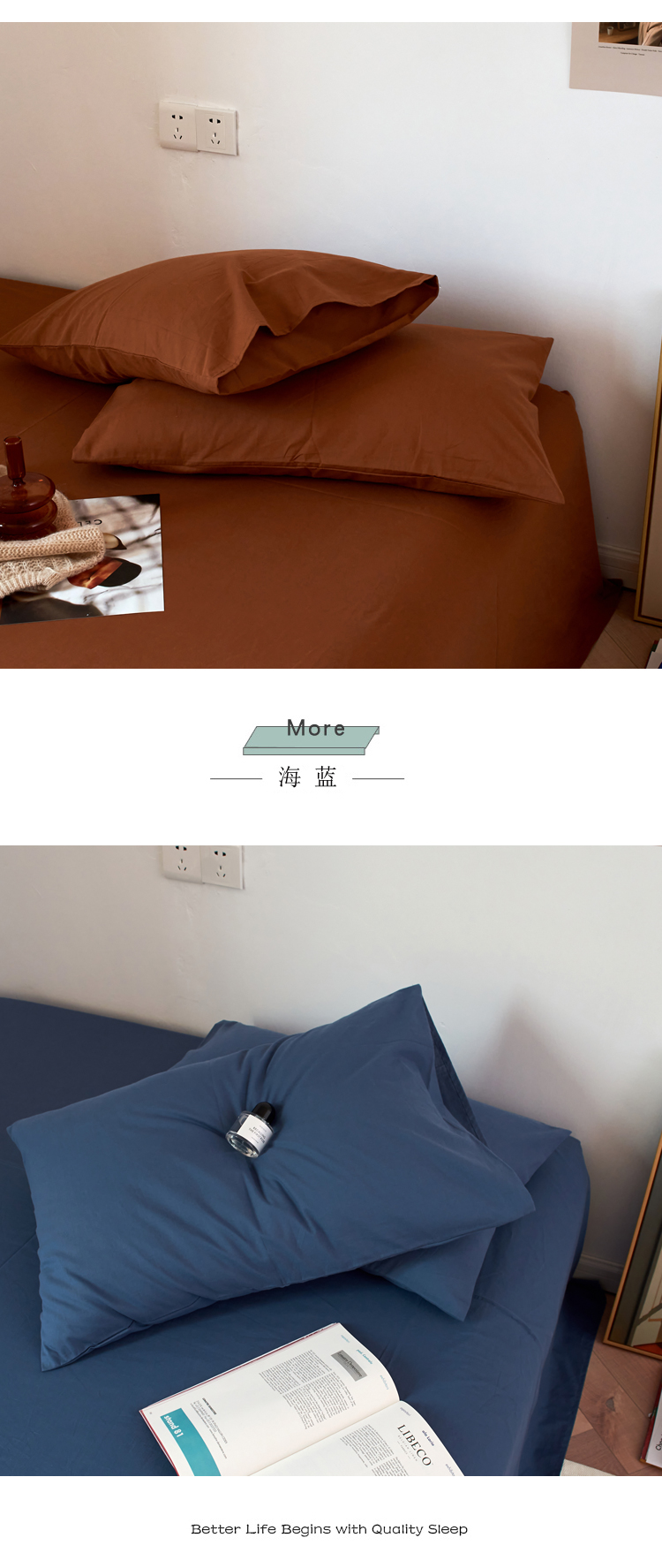 商品名称:Mr.pig猪先生水洗棉 2025新款纯色水洗棉枕套 琥珀
