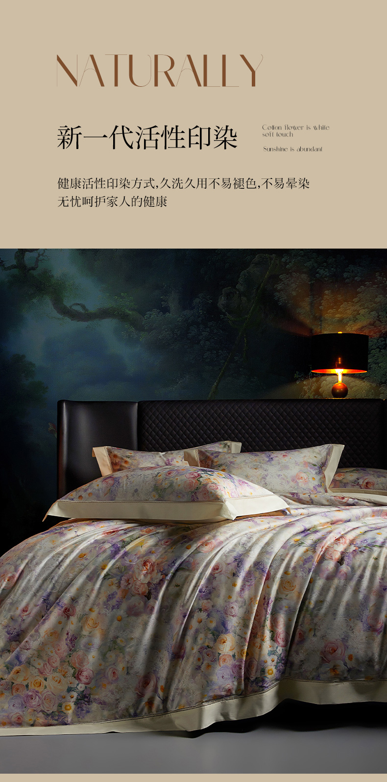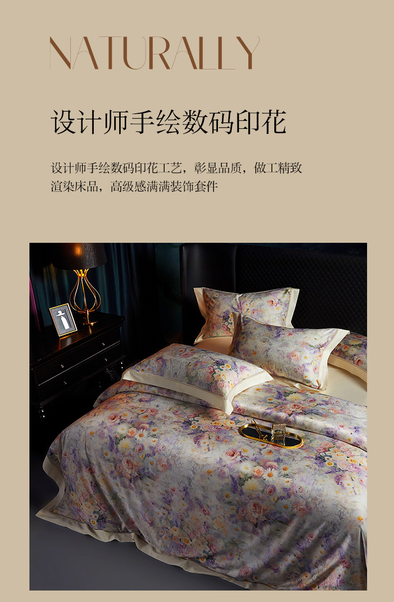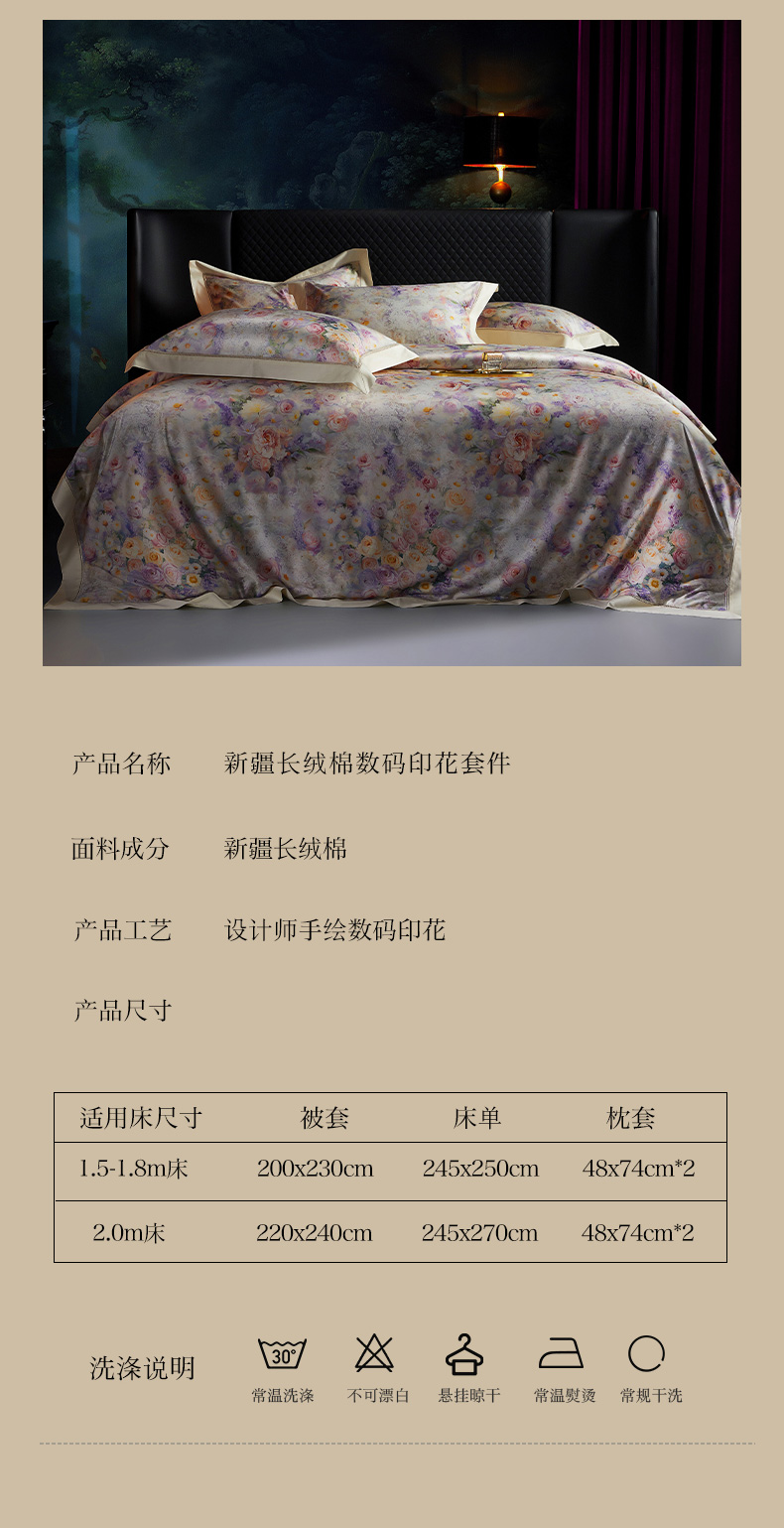 (总)米多多 2025新款新疆长绒棉数码印花四件套-暗香,暗香-米黄,暗香-紫