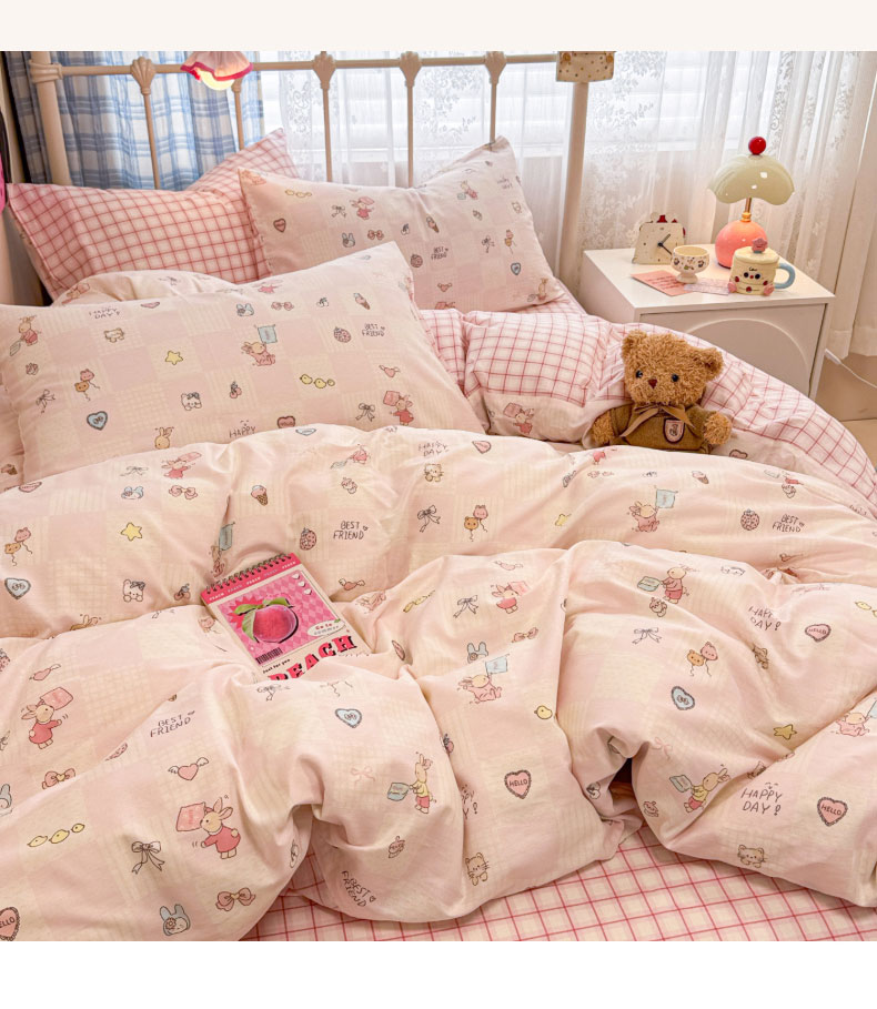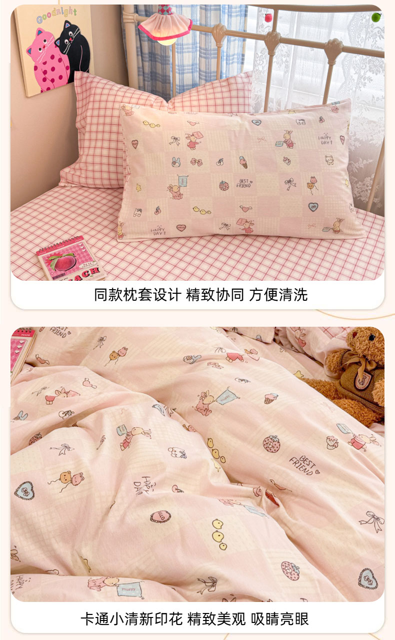 当前位置: 91家纺网 > 商品网购 > 床品套件 > 四件套 > 全棉普通四件套 > 呗旺鹿 2025新款40s全棉纯棉卡通印花学生系列四件套 兔子假期