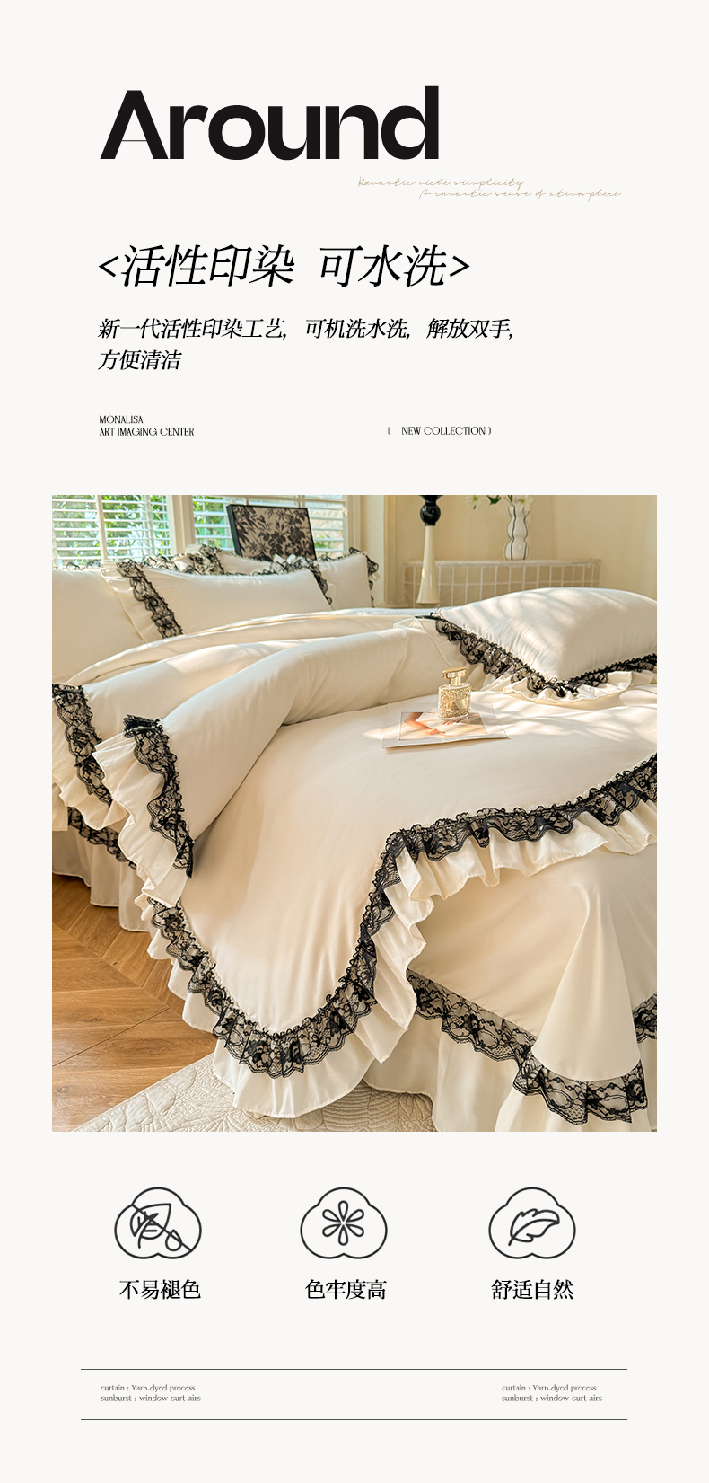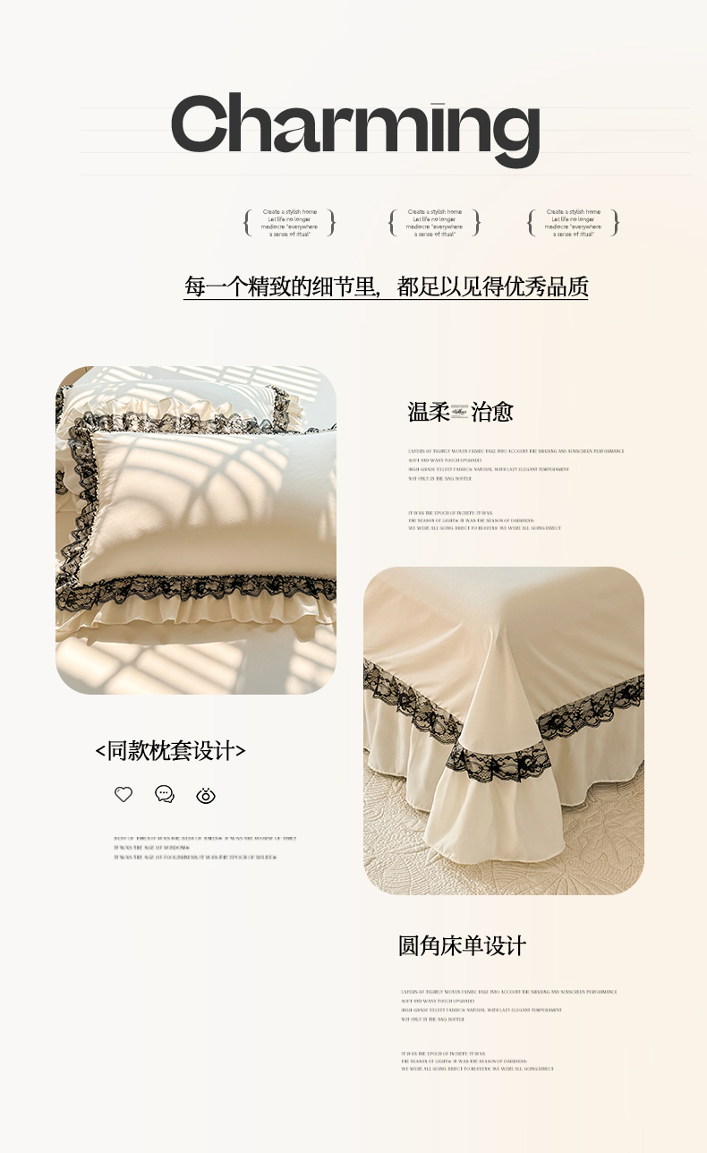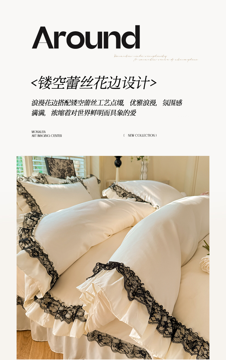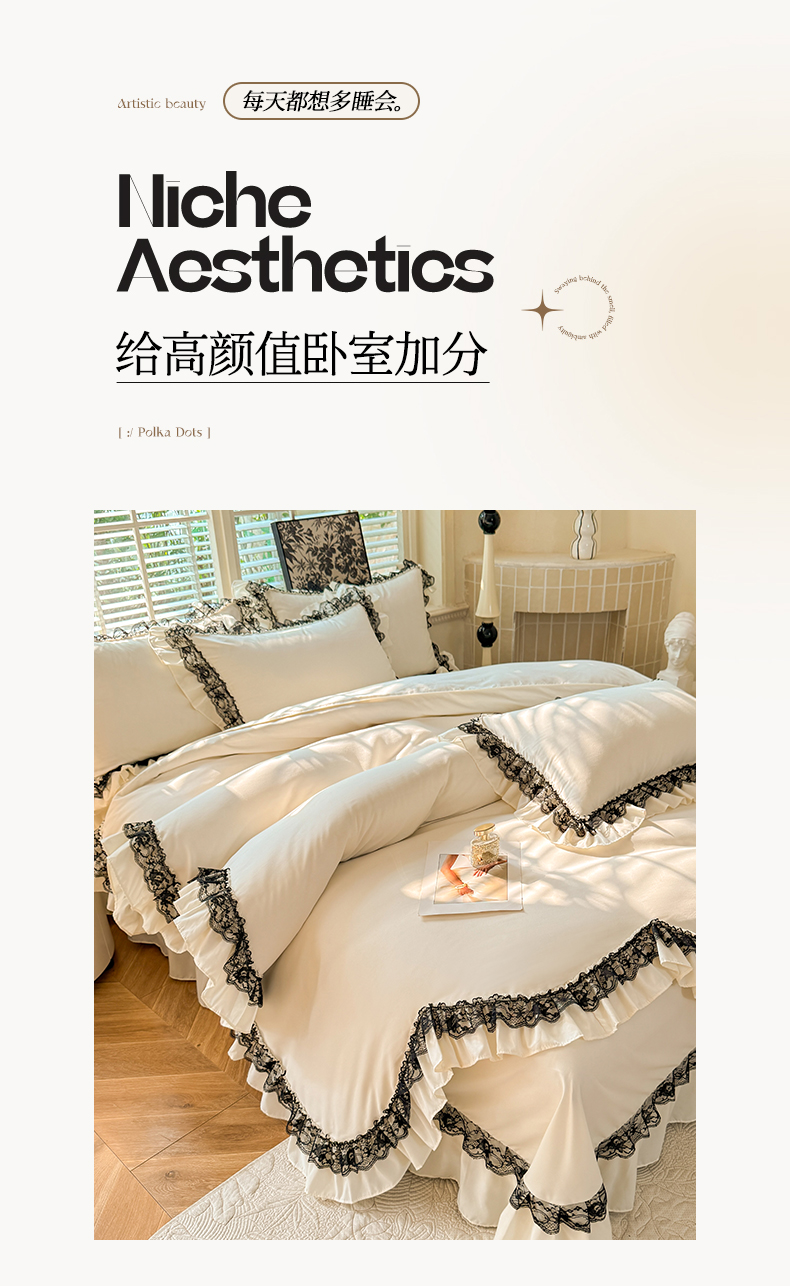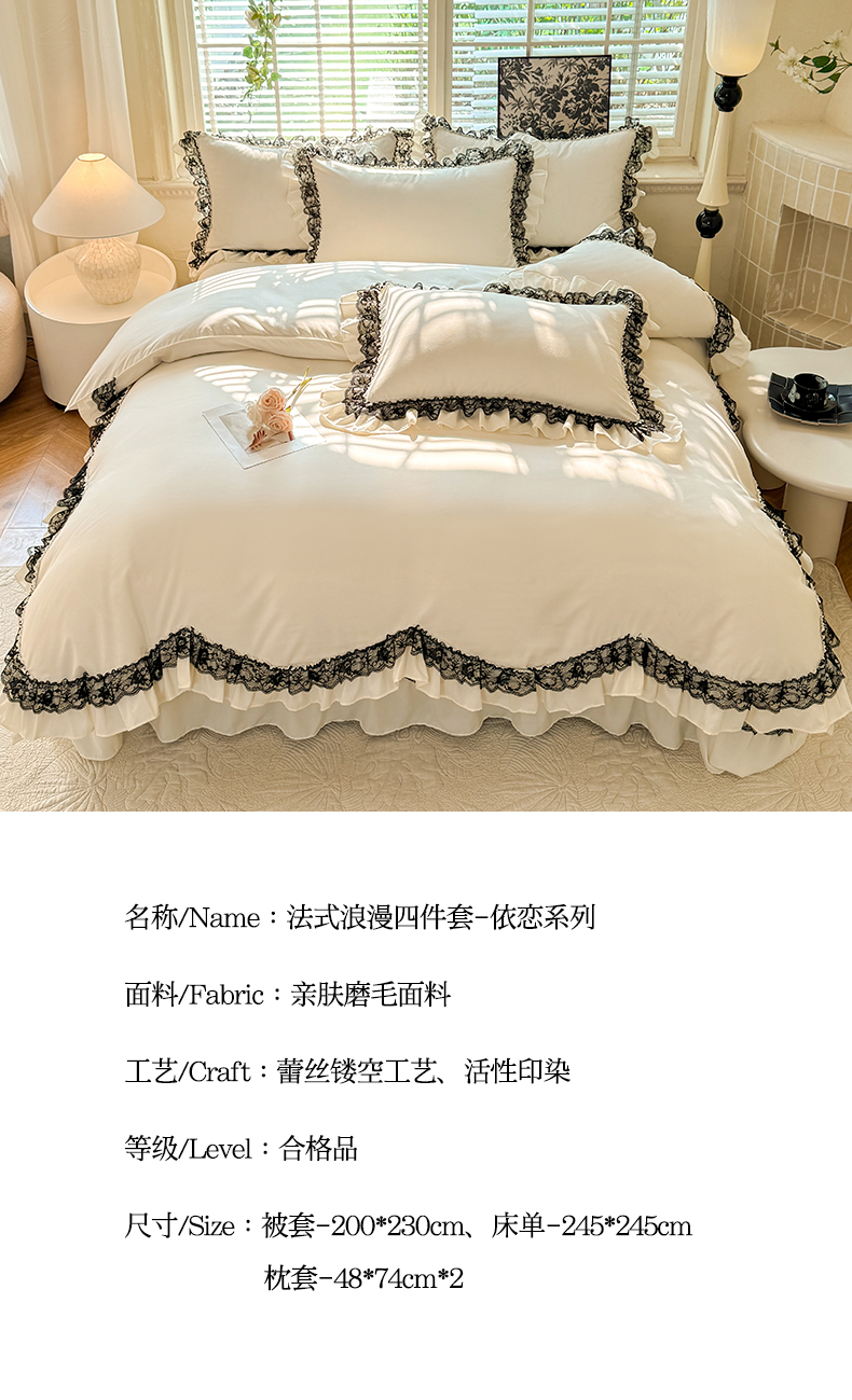 商品名称:芭比蔓家纺 2025新款亲肤磨毛法式浪漫四件套-依恋 依恋-米色