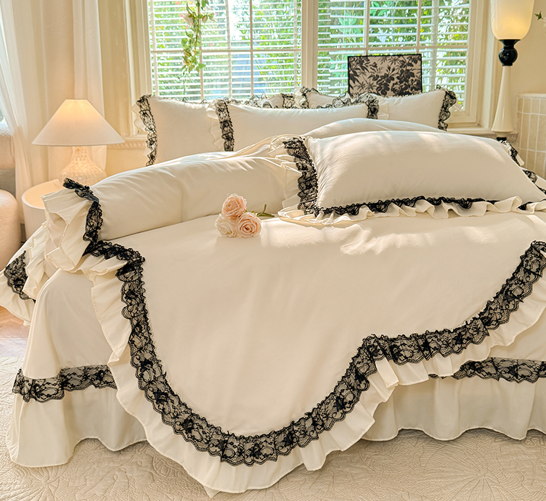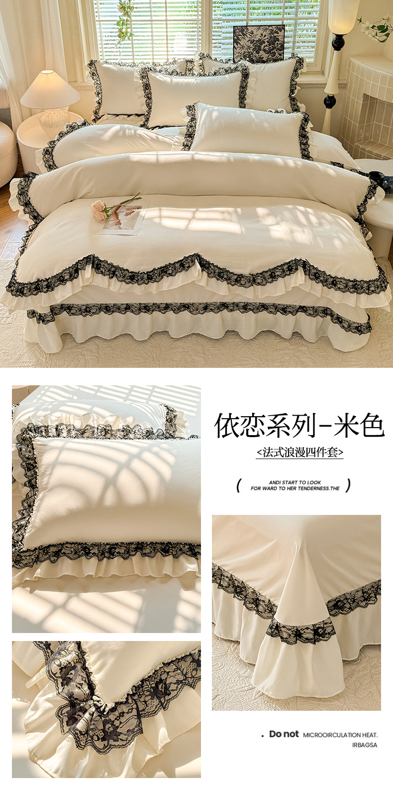 芭比蔓家纺 2025新款亲肤磨毛法式浪漫四件套-依恋 依恋-米色