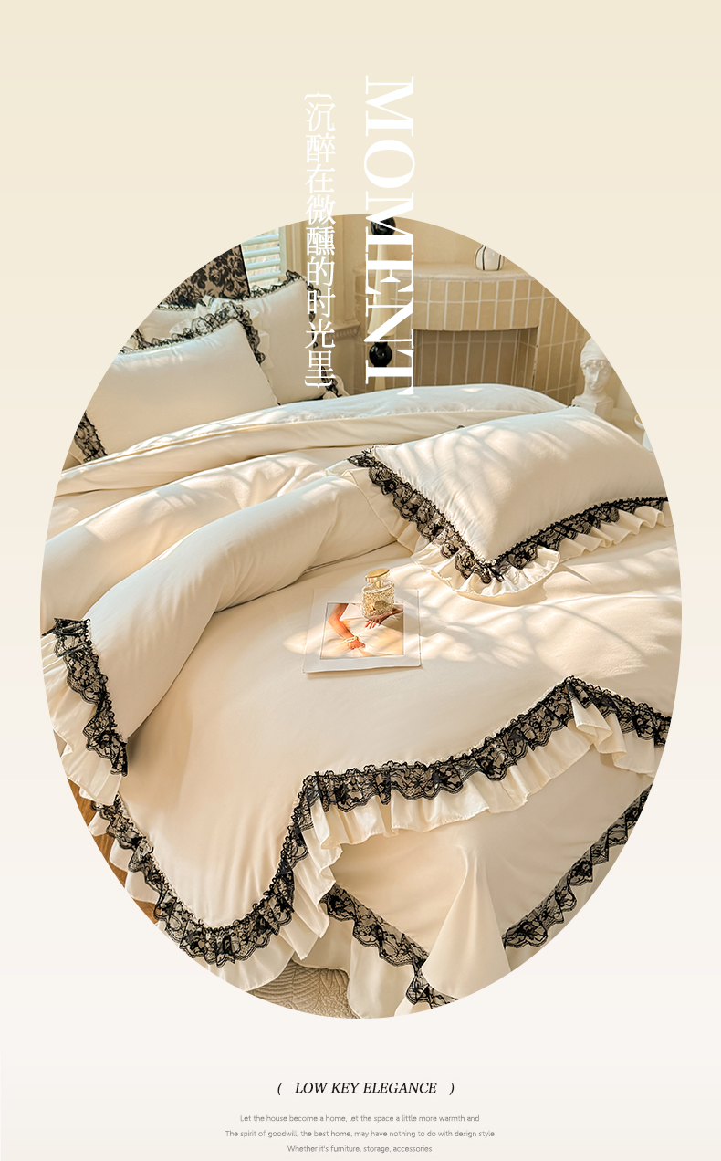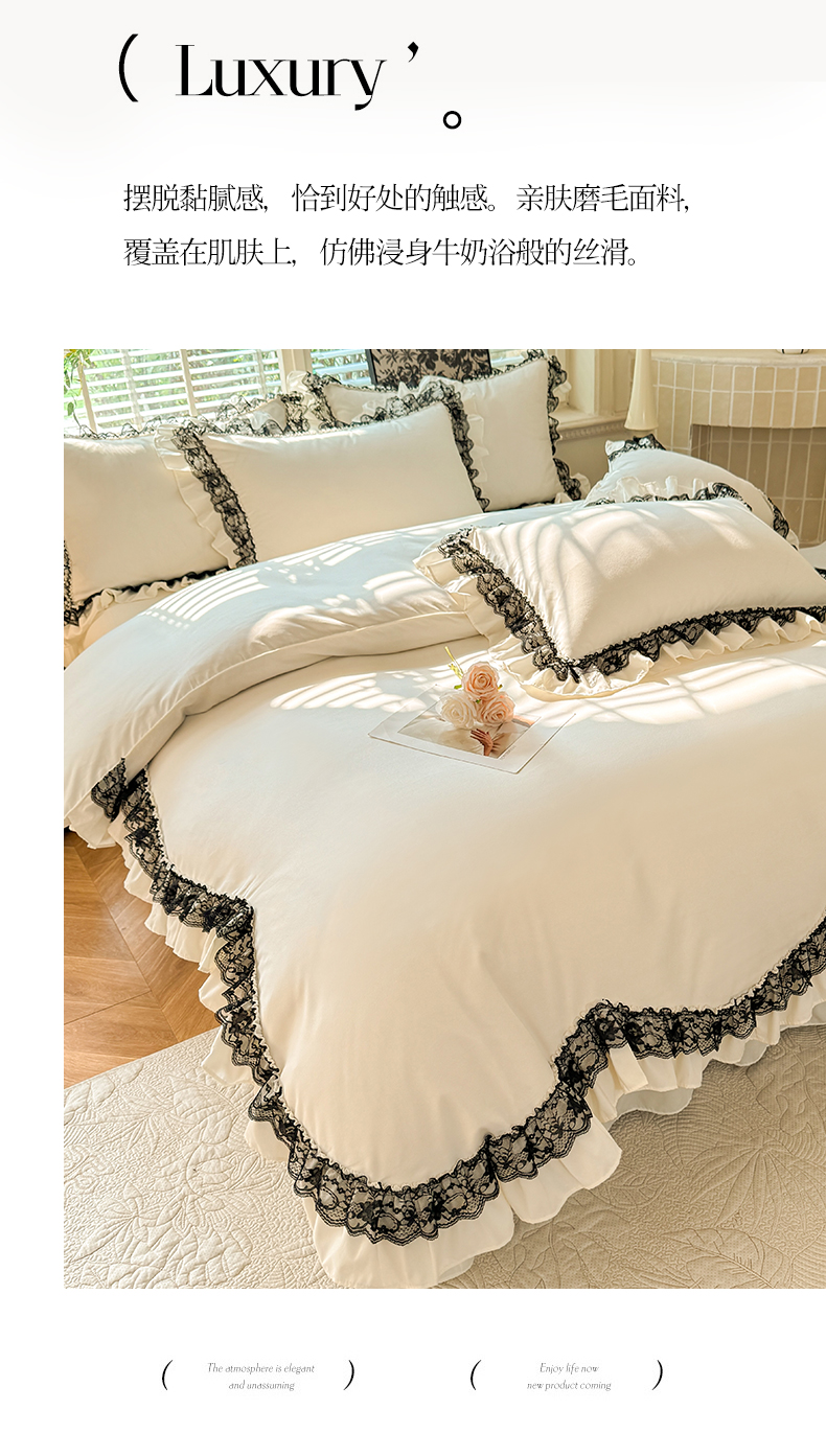 芭比蔓家纺 2025年新款雕花牛奶绒花边四件套-爱丽丝 爱丽丝-玉,爱丽丝-玉