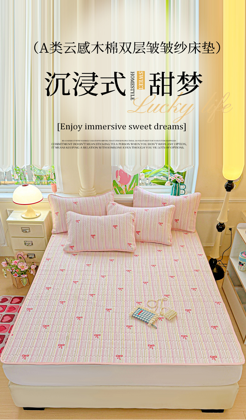 • 91家纺网 家纺一手货源 找家纺 恒尚居 2025新款云感床褥垫双层皱皱纱学生软床垫床护垫-四季款-系列二 完美日记