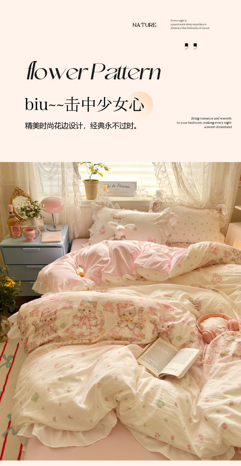 当前位置: 91家纺网 > 商品网购 > 床品套件 > 四件套 > 水洗棉四件套 > 慕澄家纺 2025新款小清新花边款水洗棉四件套-第二波 花边款-洛丽塔