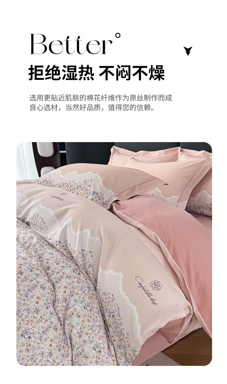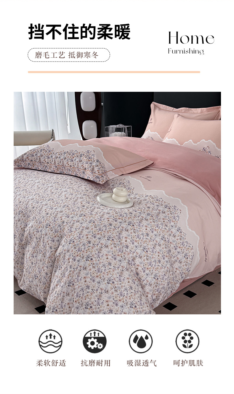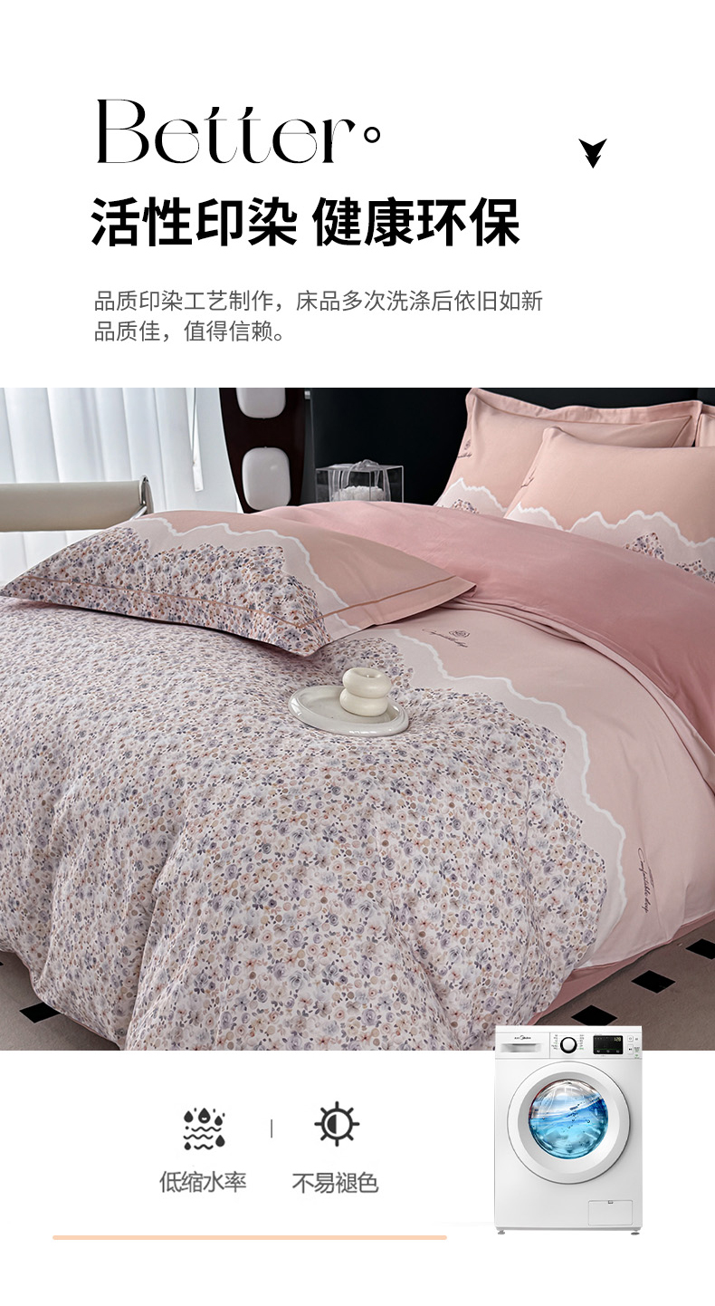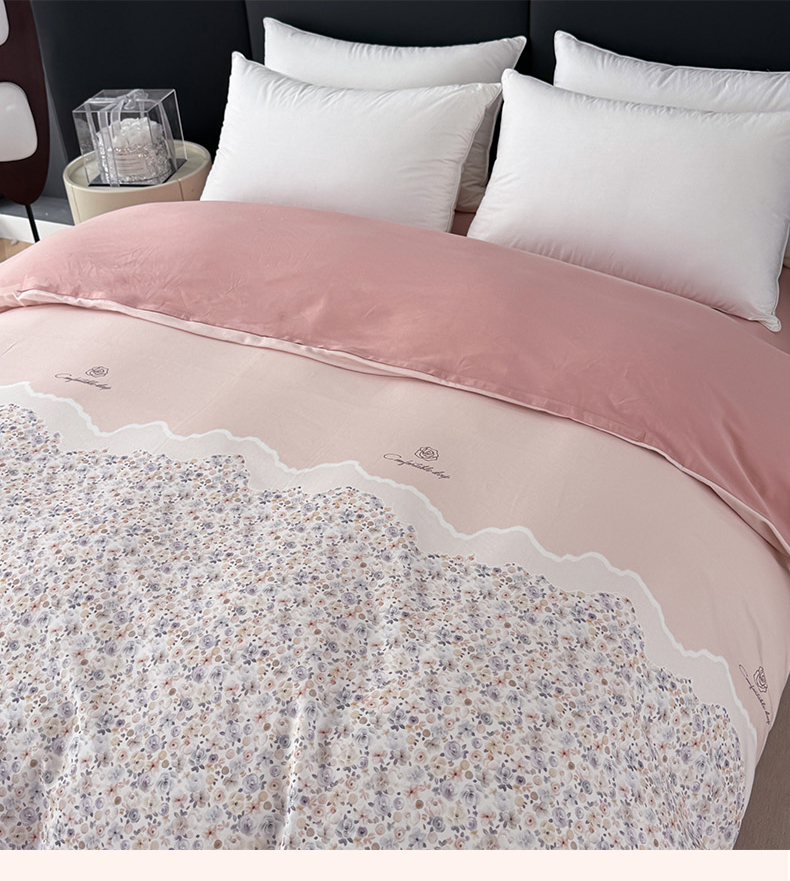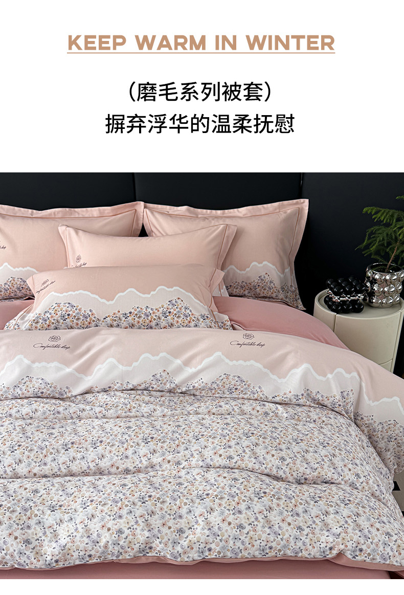 • 91家纺网 家纺一手货源 找家纺 艾迪尚家纺 2025新款云感超柔全棉磨毛印花单品被套系列 夕月-粉