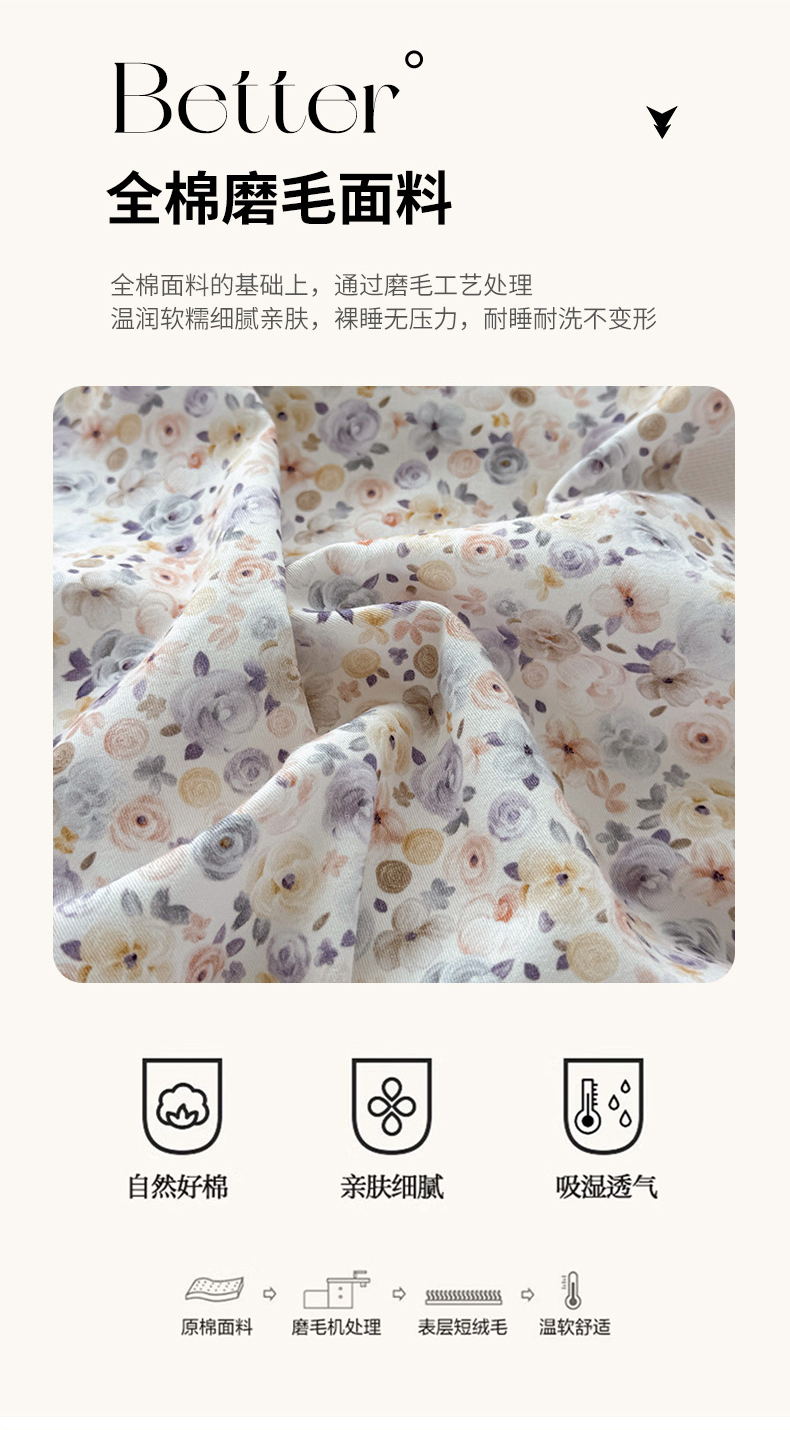 艾迪尚家纺 2025新款云感超柔全棉磨毛印花单品被套系列 夕月-粉