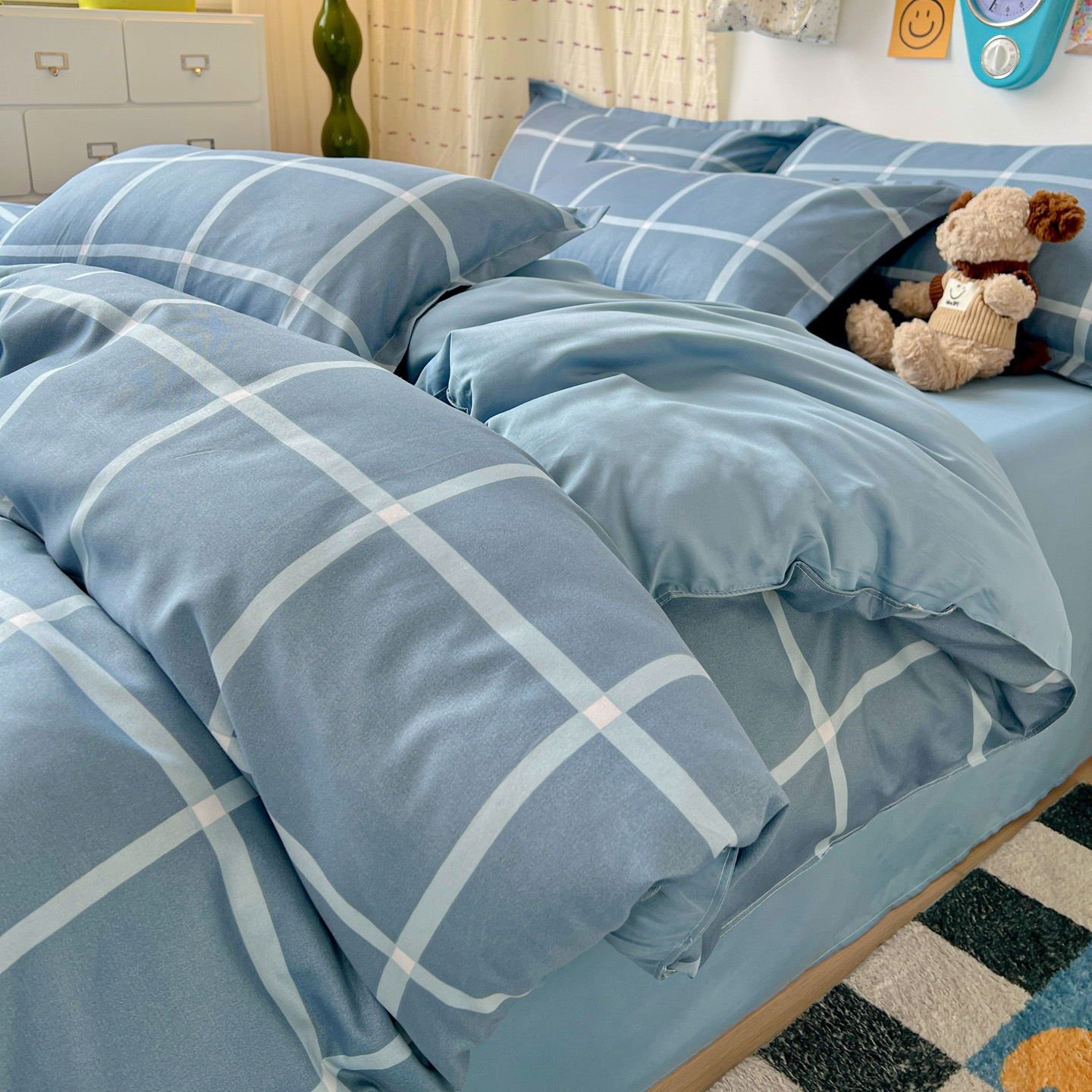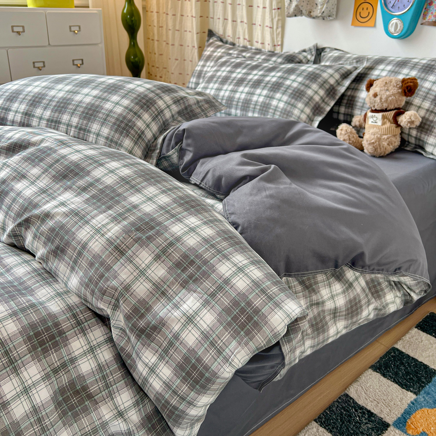 当前位置: 91家纺网 > 商品网购 > 床品套件 > 四件套 > 其它四件套 > 楠沐家纺 2025新款格子系列芦荟棉四件套 洛可可灰