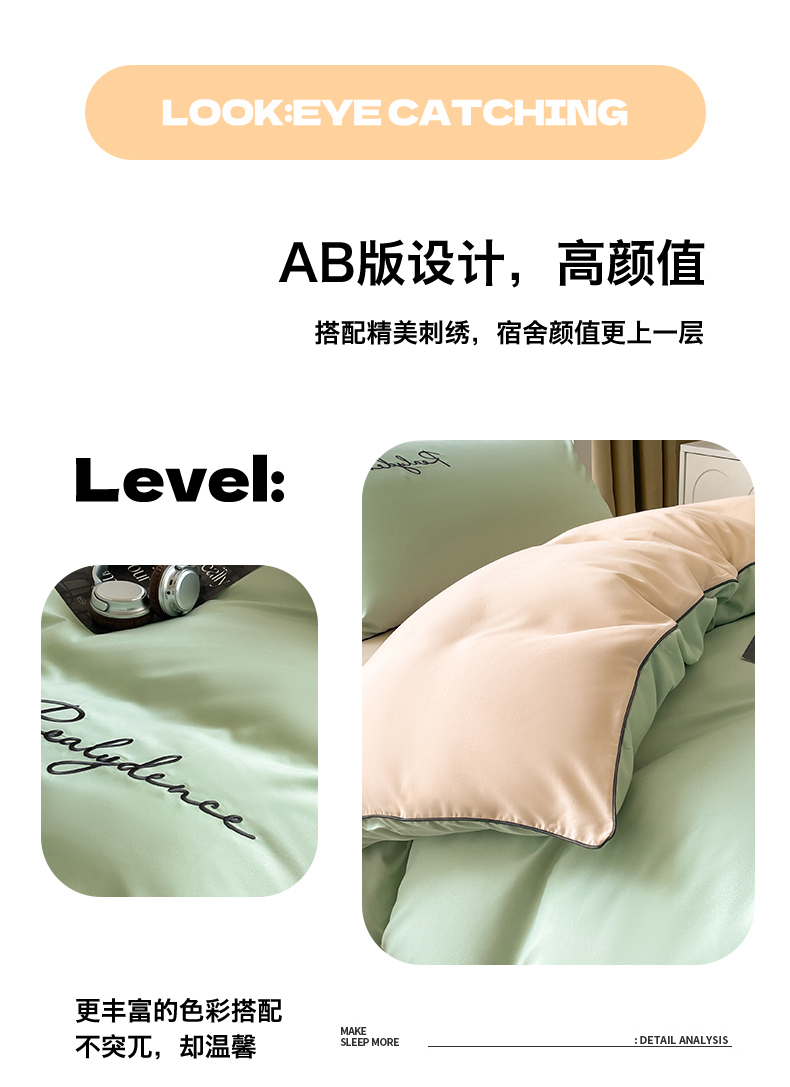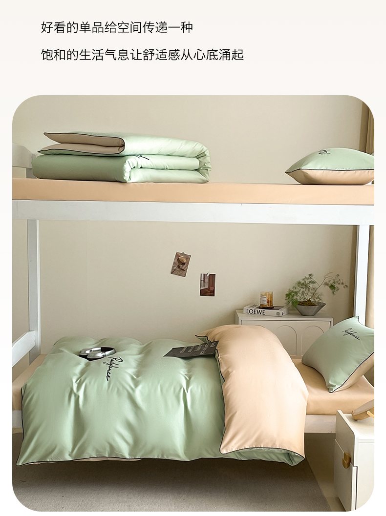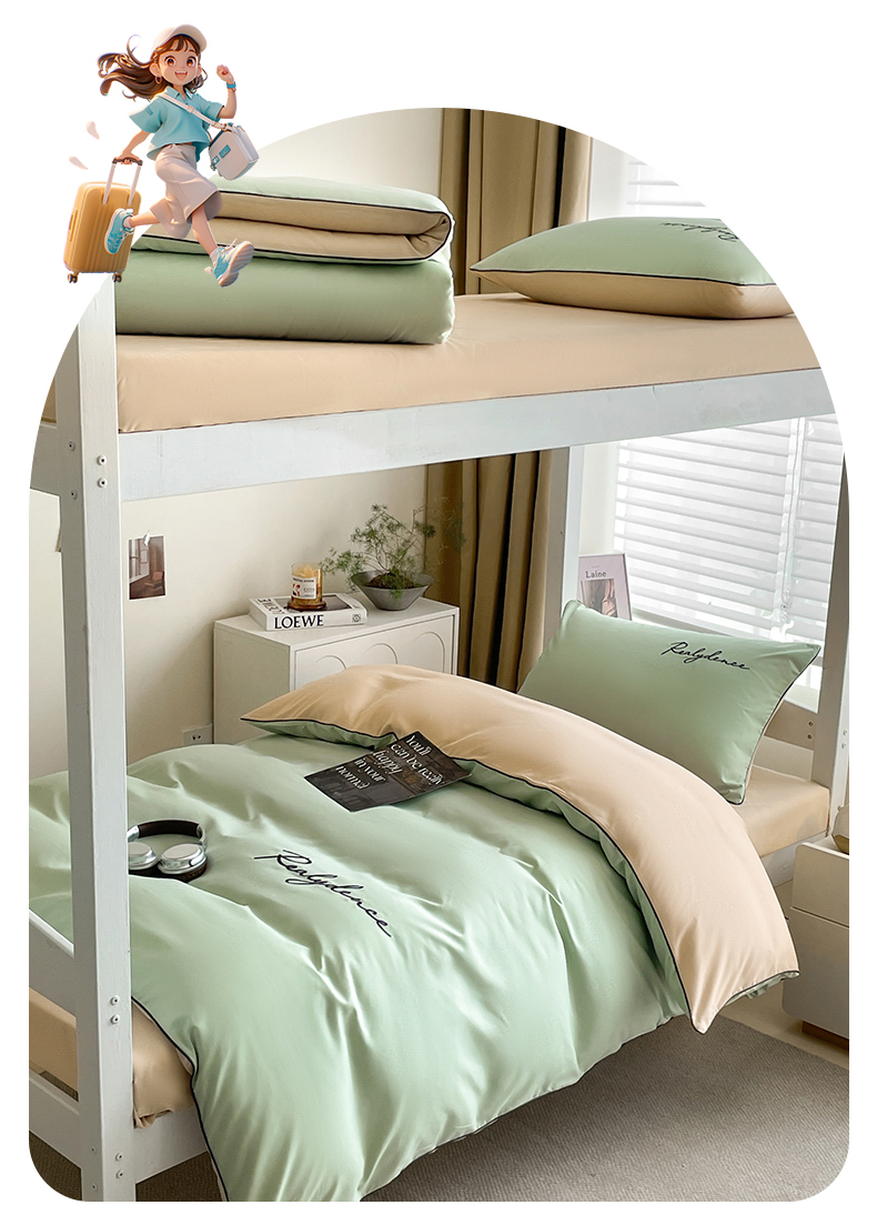 笙意家纺 2025新款亲肤水洗棉麻绳款学生三件套-安琪系列 安琪-灰绿+奶茶