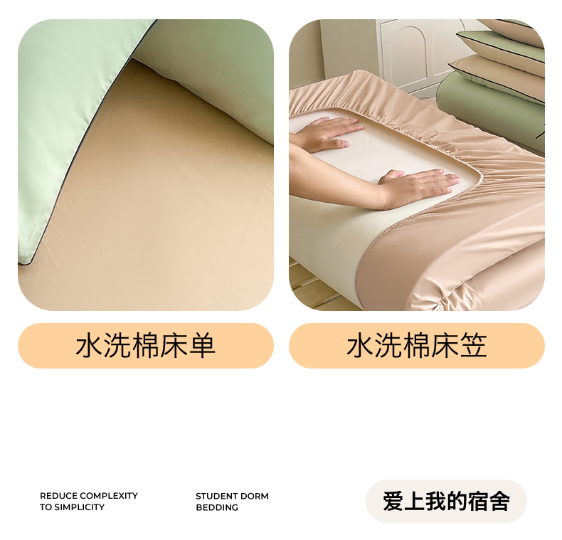 商品名称:笙意家纺 2025新款亲肤水洗棉麻绳款学生三件套-安琪系列 安琪-灰绿+奶茶