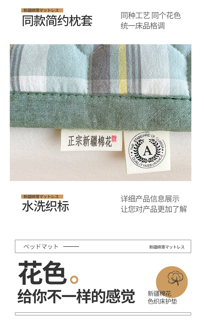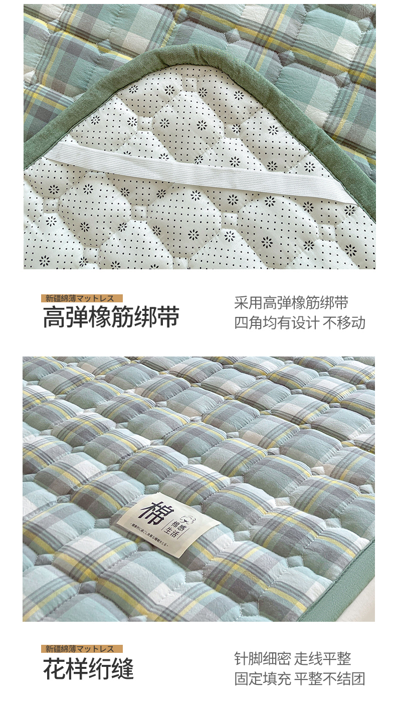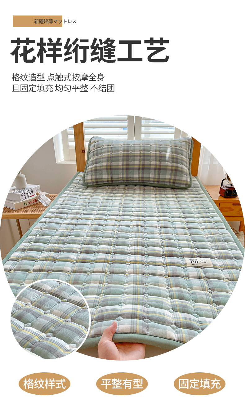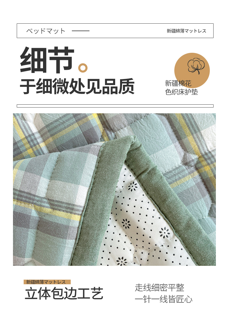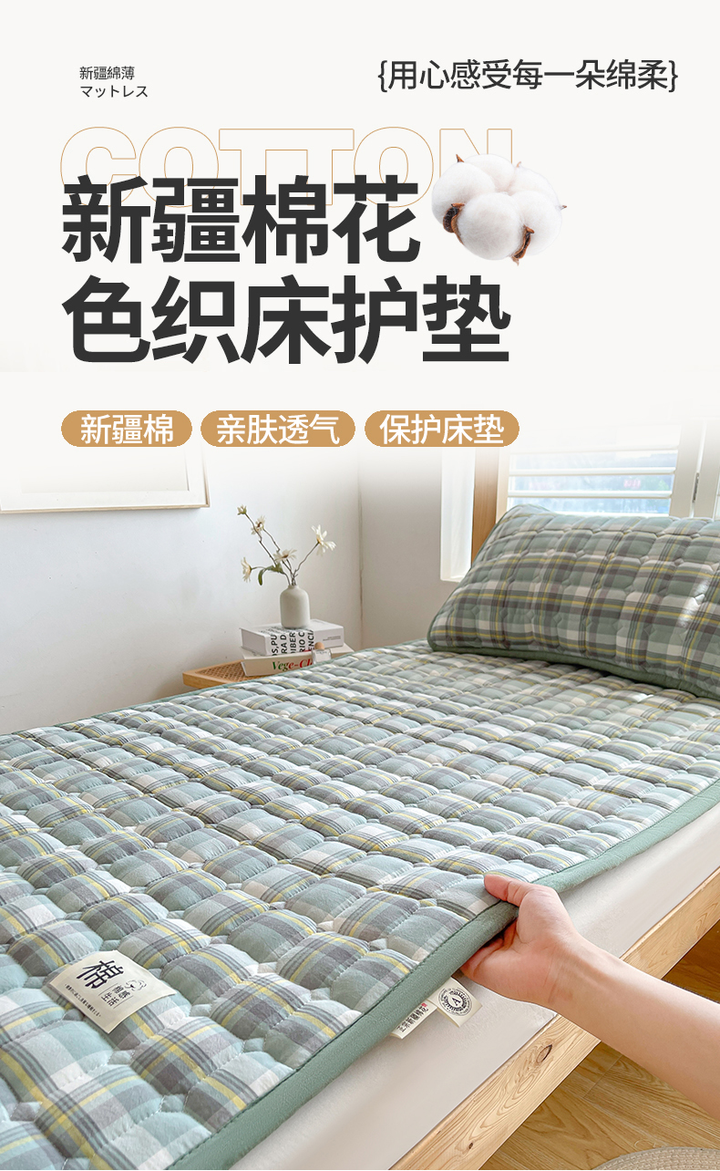 • 91家纺网 家纺一手货源 找家纺 梵朴 2025新款A类无印风水洗棉夹棉新疆棉花宿舍学生床垫床护垫 简析绿