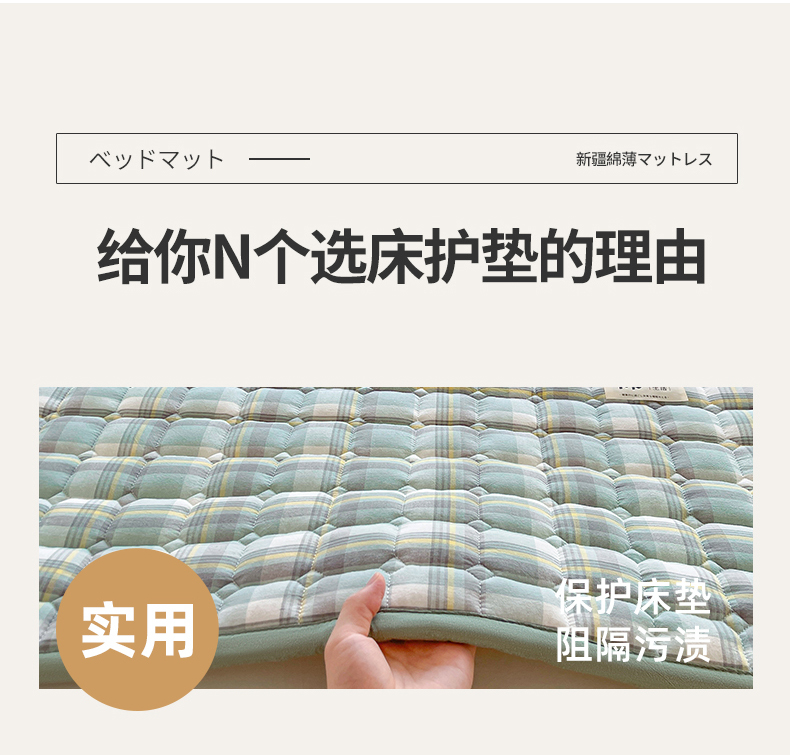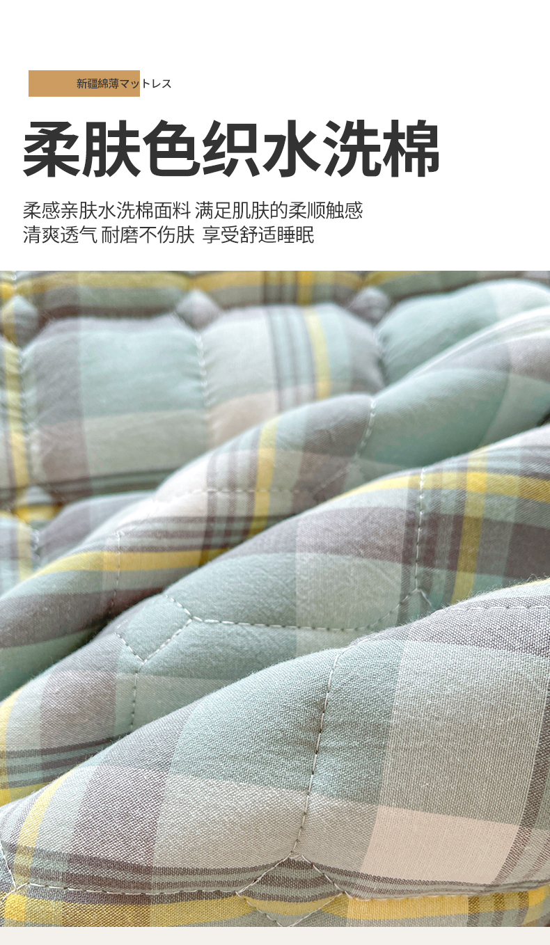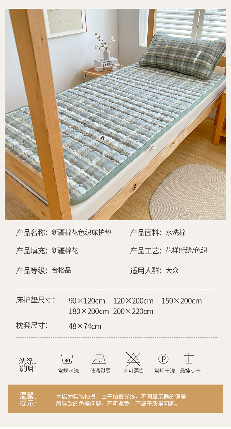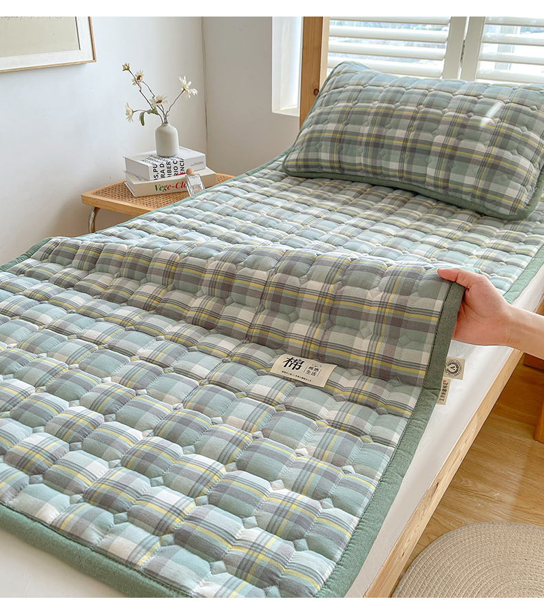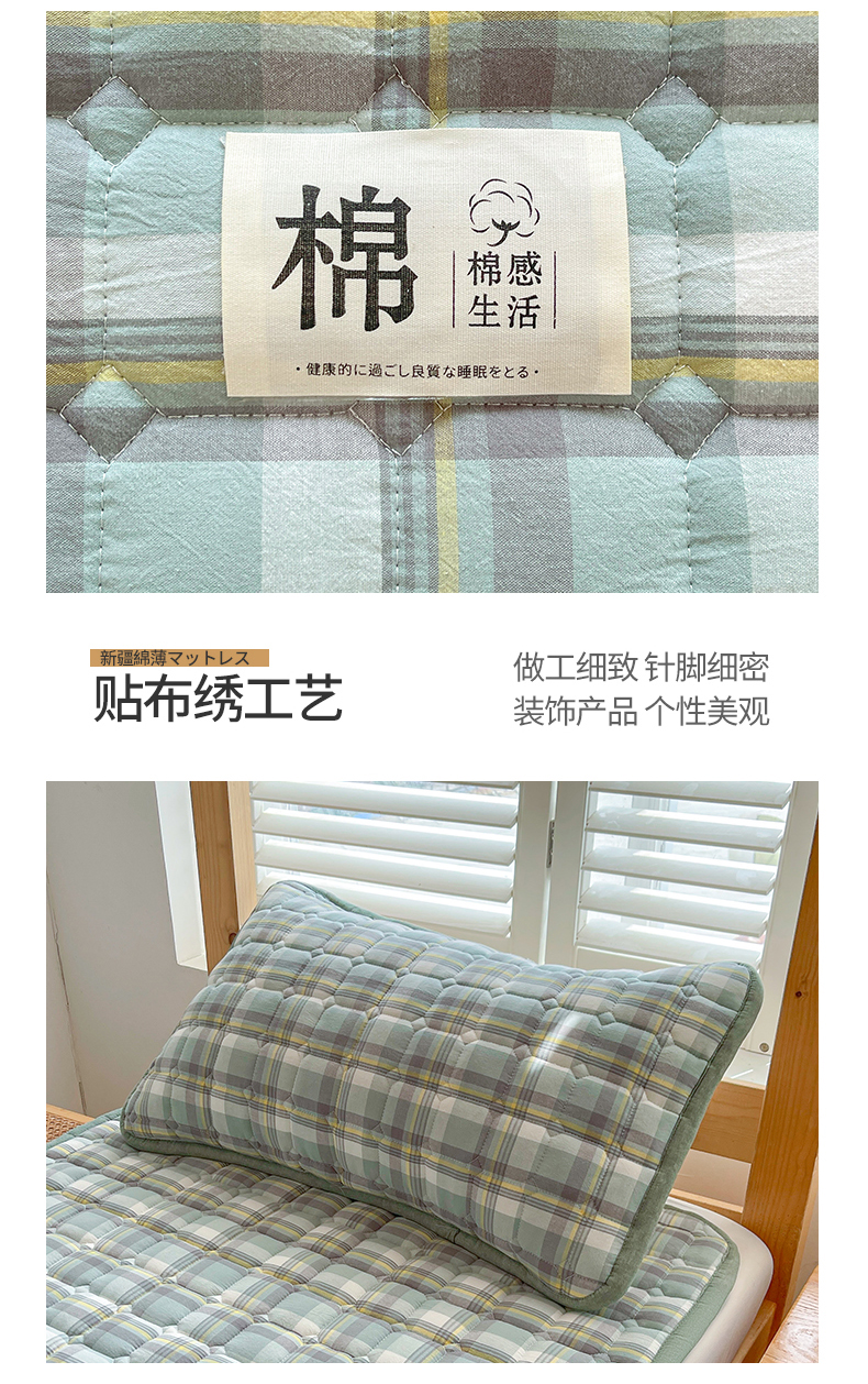 • 91家纺网 家纺一手货源 找家纺 梵朴 2025新款A类无印风水洗棉夹棉新疆棉花宿舍学生床垫床护垫 简析绿