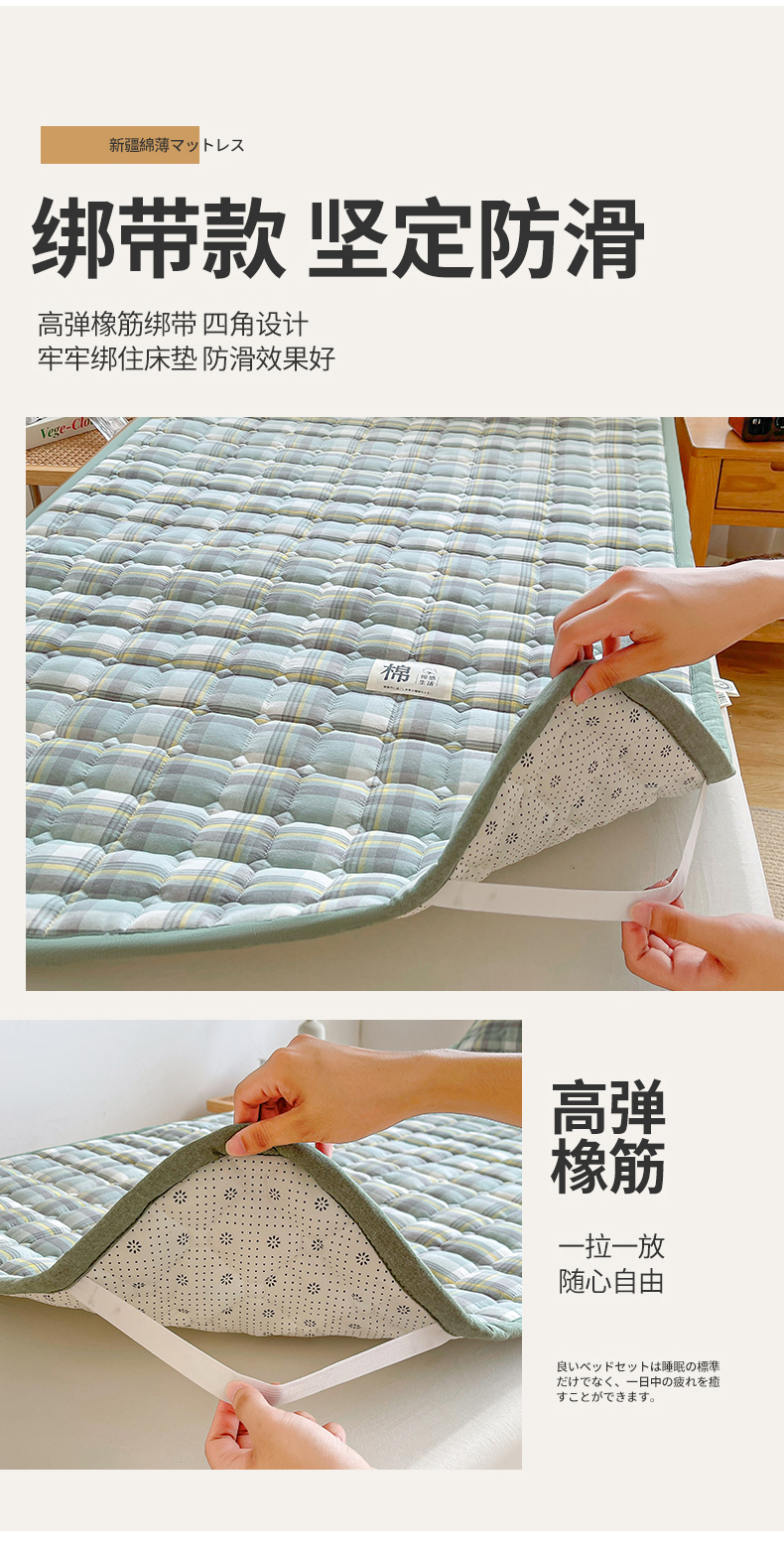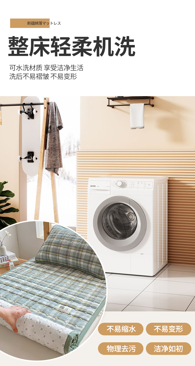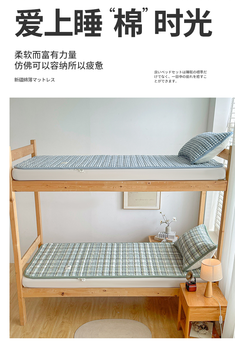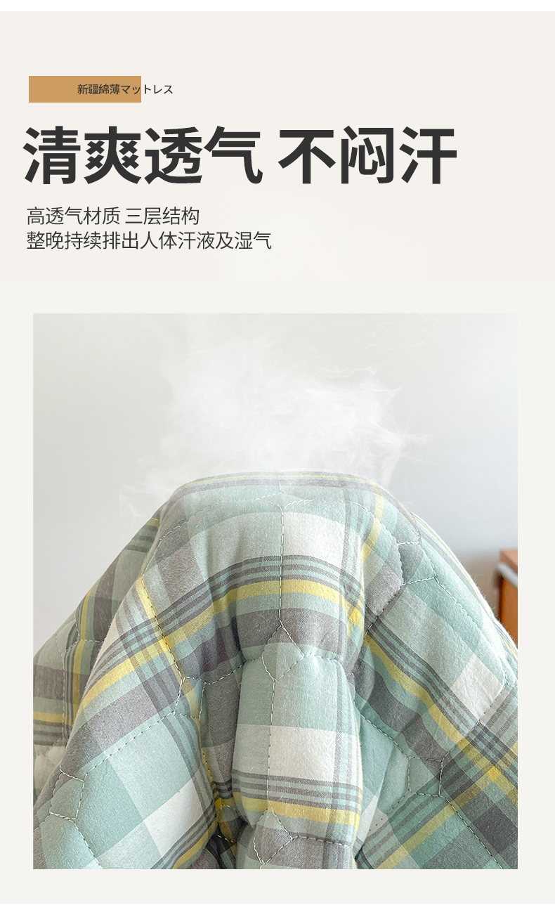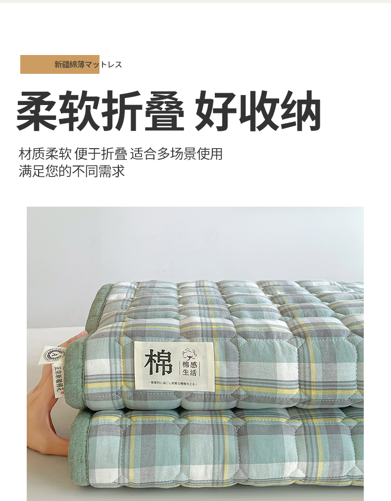 • 91家纺网 家纺一手货源 找家纺 梵朴 2025新款A类无印风水洗棉夹棉新疆棉花宿舍学生床垫床护垫 简析绿