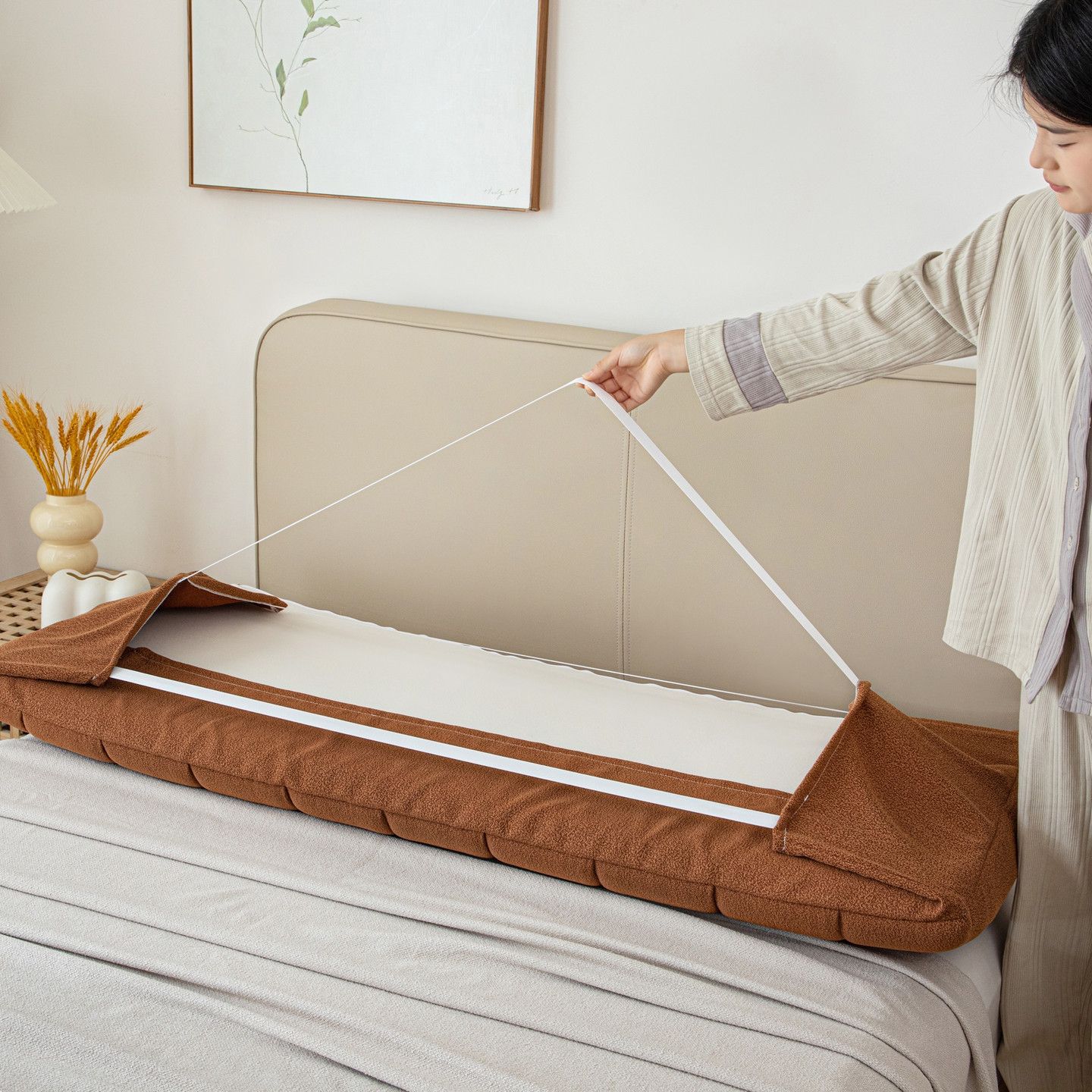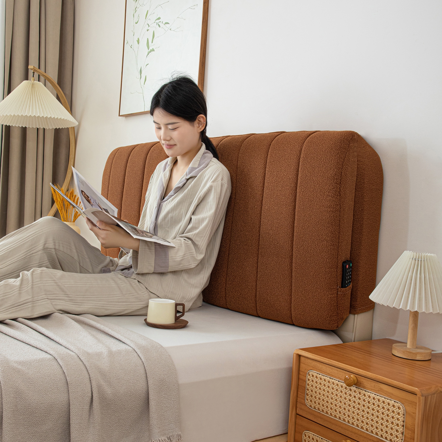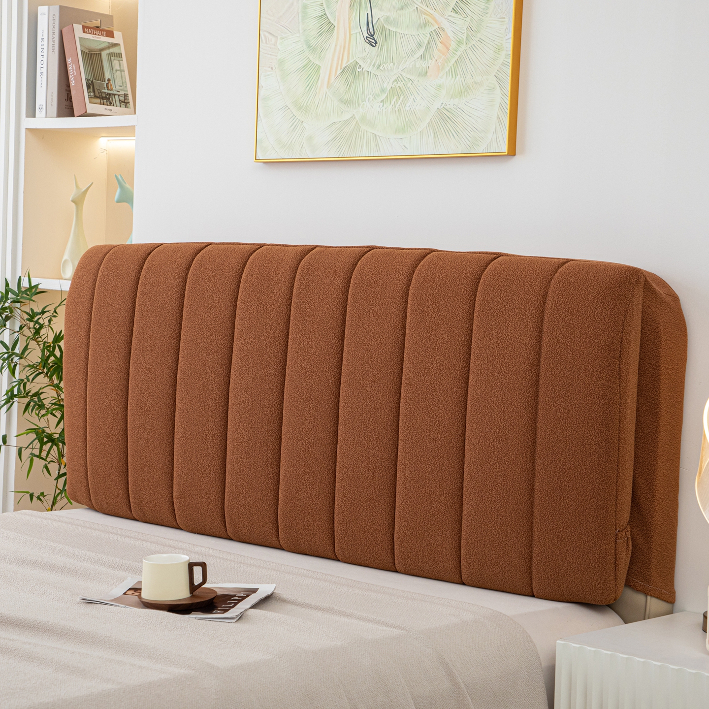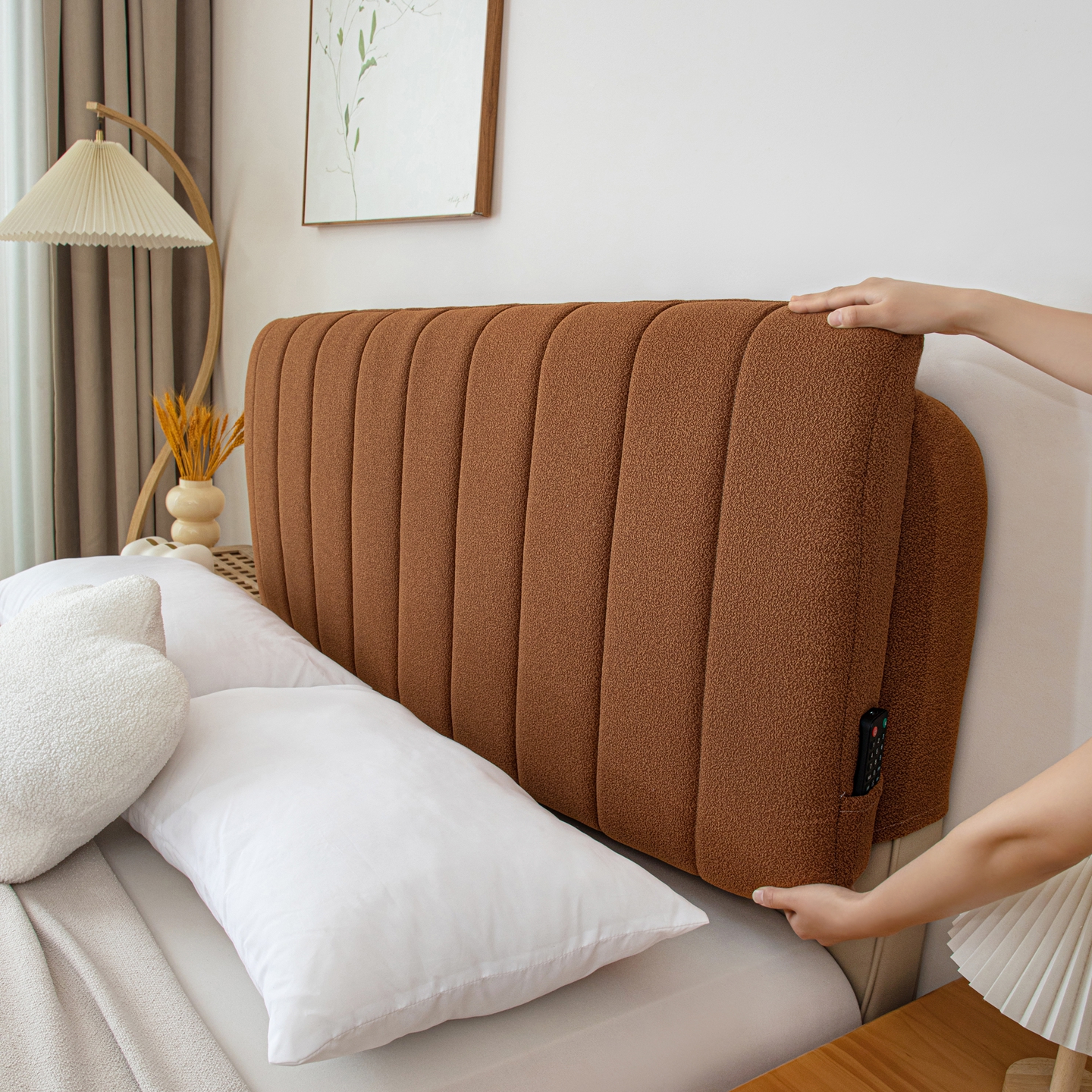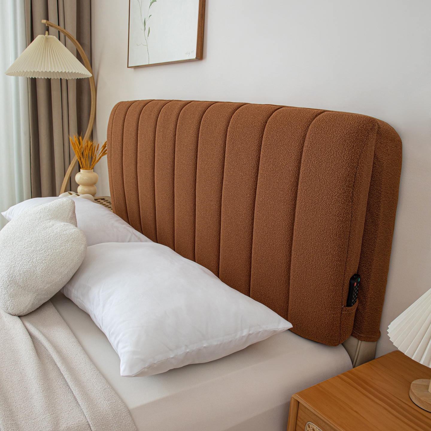 沐沐家纺 2026新款泰迪绒床头罩靠背 拿铁咖啡