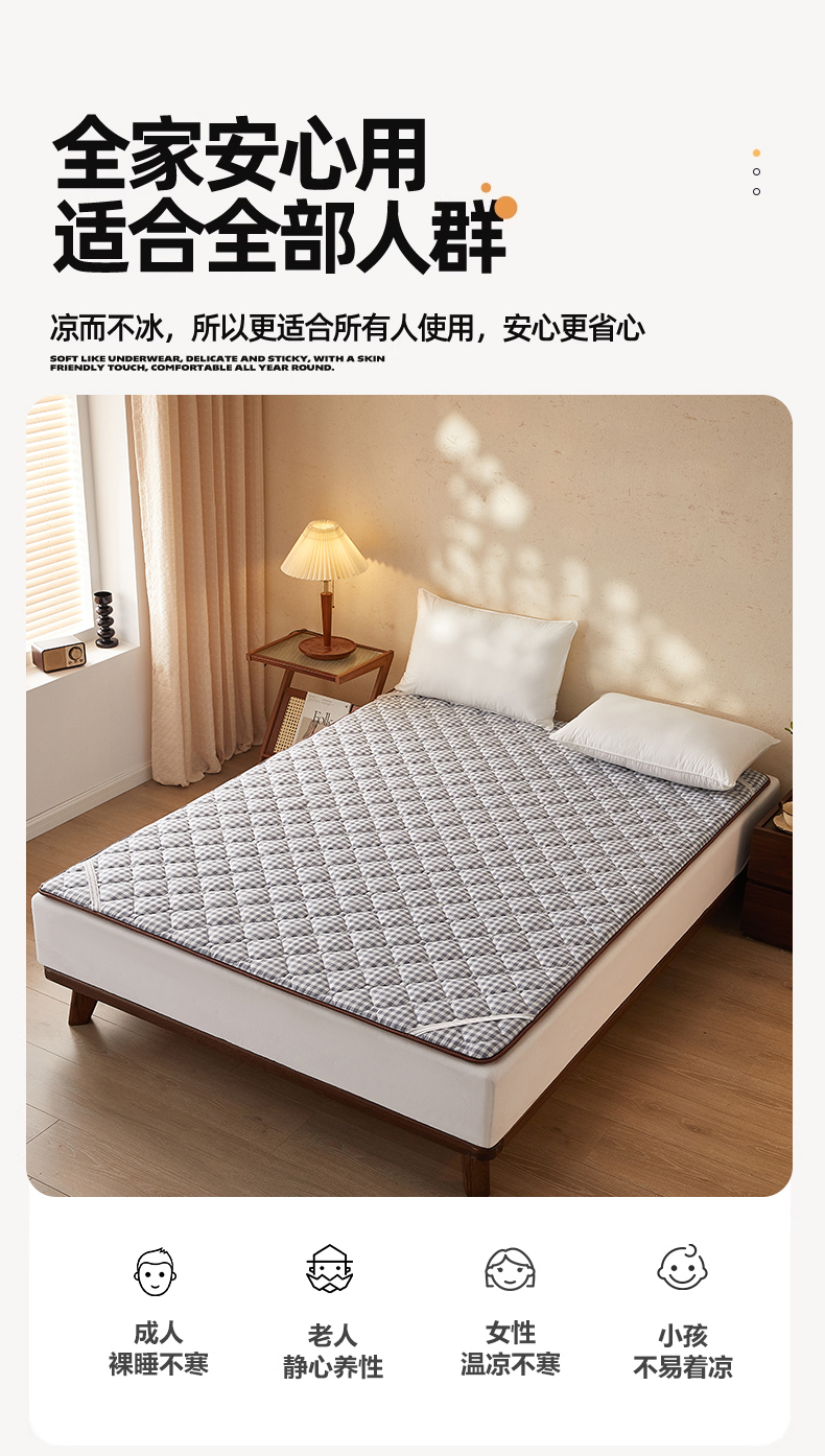花言狐语 2025新款双面可用冰藤夹棉床褥系列-大床款 冰藤床褥-灰小格(玉米粒)
