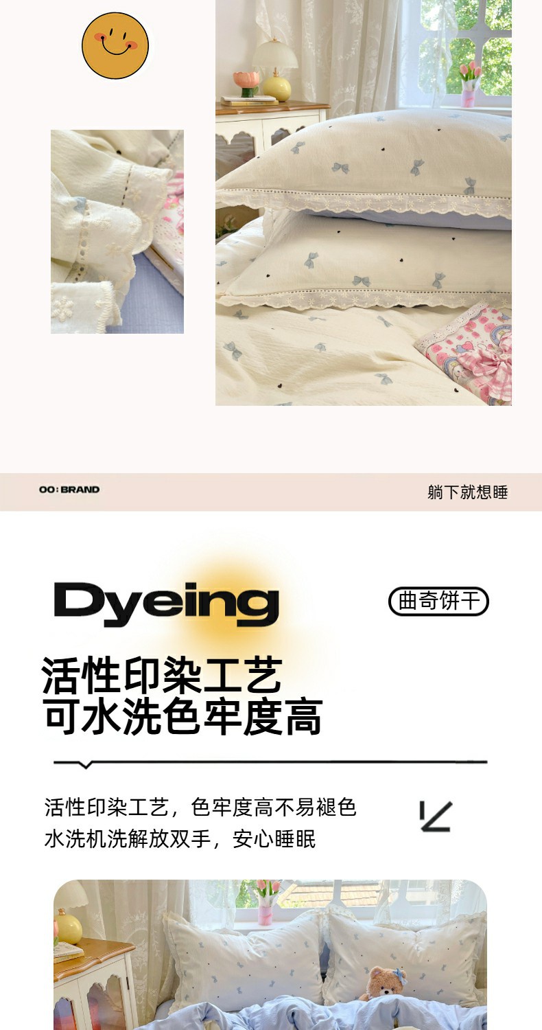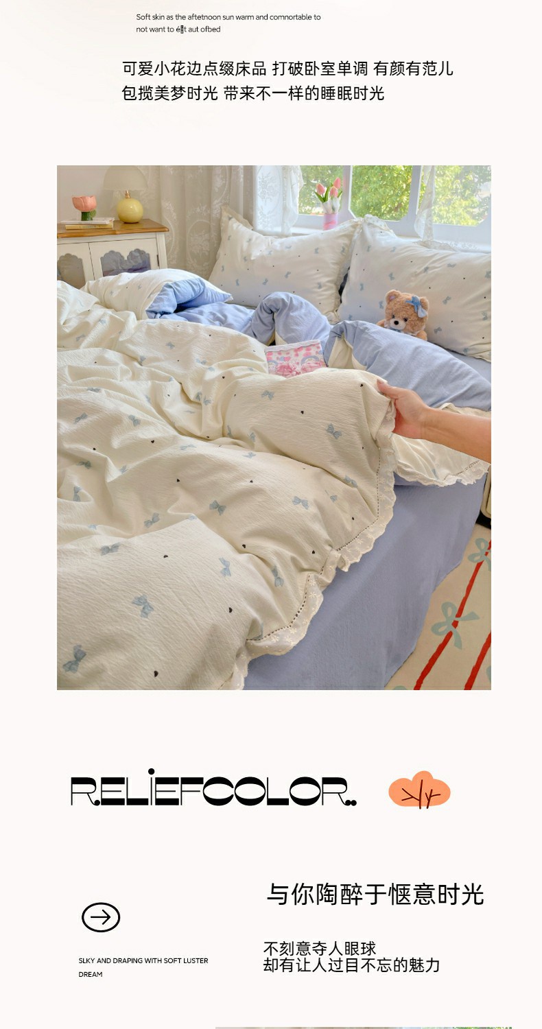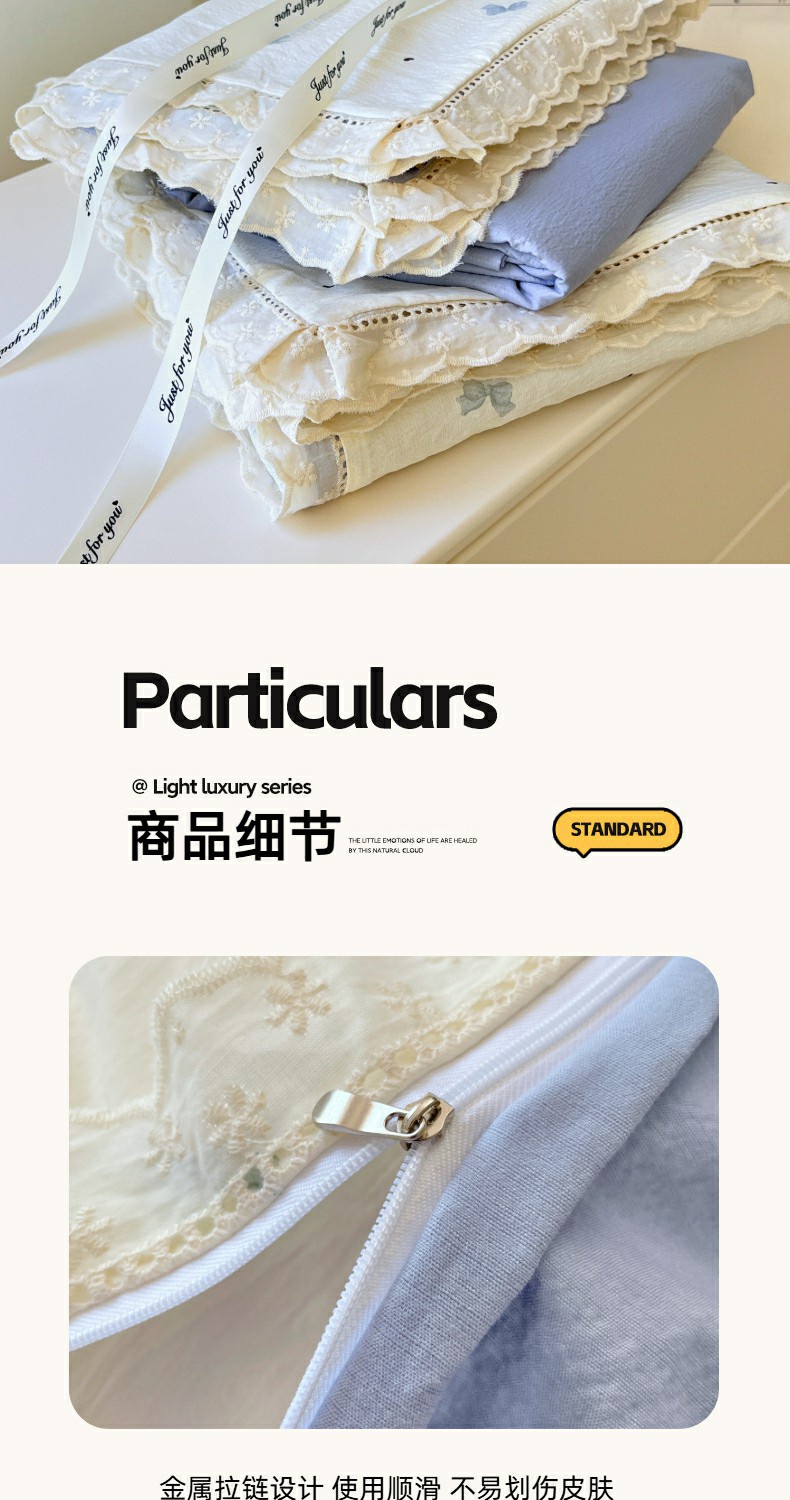 当前位置: 91家纺网 > 商品网购 > 床品套件 > 四件套 > 其它四件套 > 优尚佳生活馆 2025新款云感木棉皱皱双层纱全棉镂空花边四件套(提供买家秀) 蝴蝶蓝