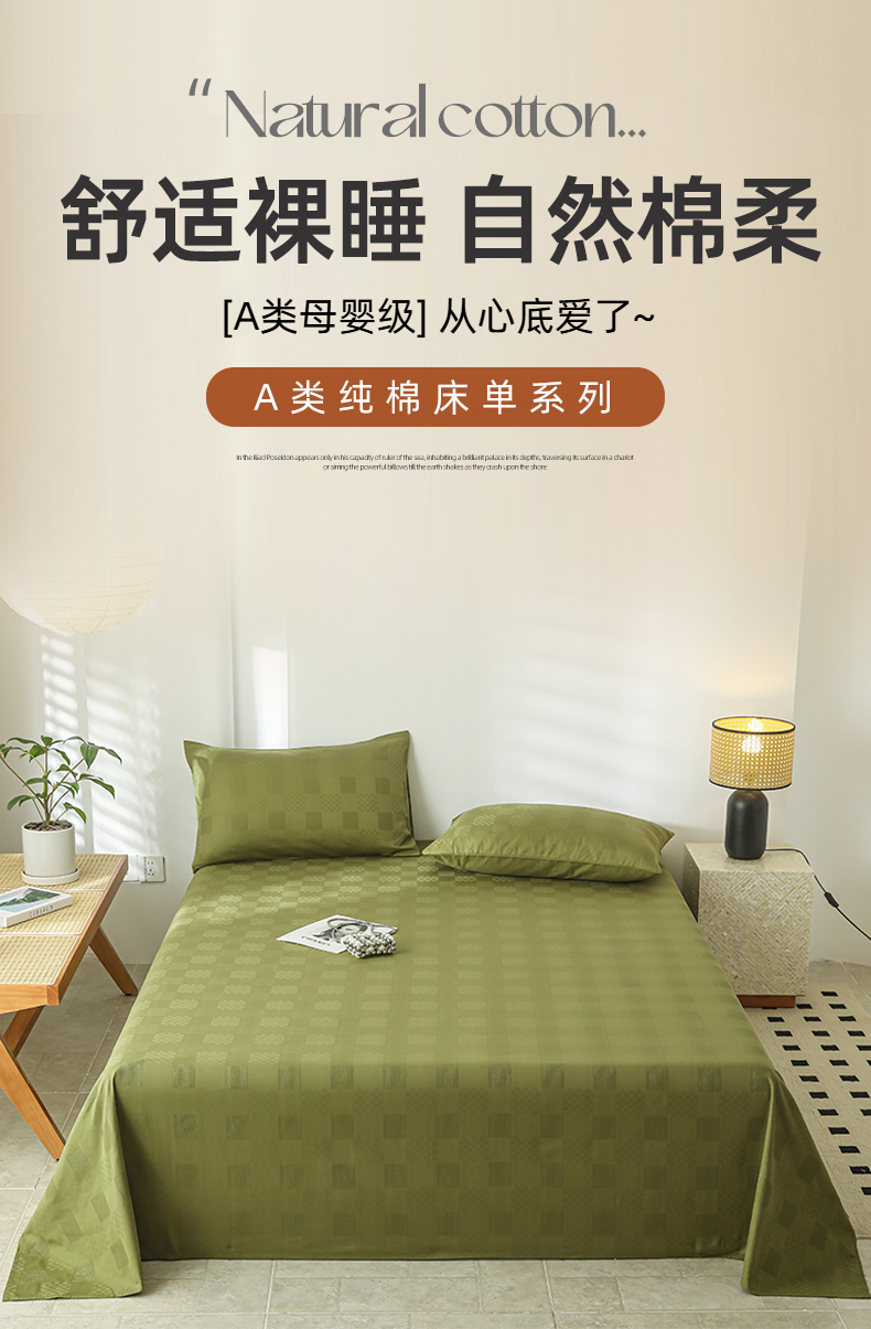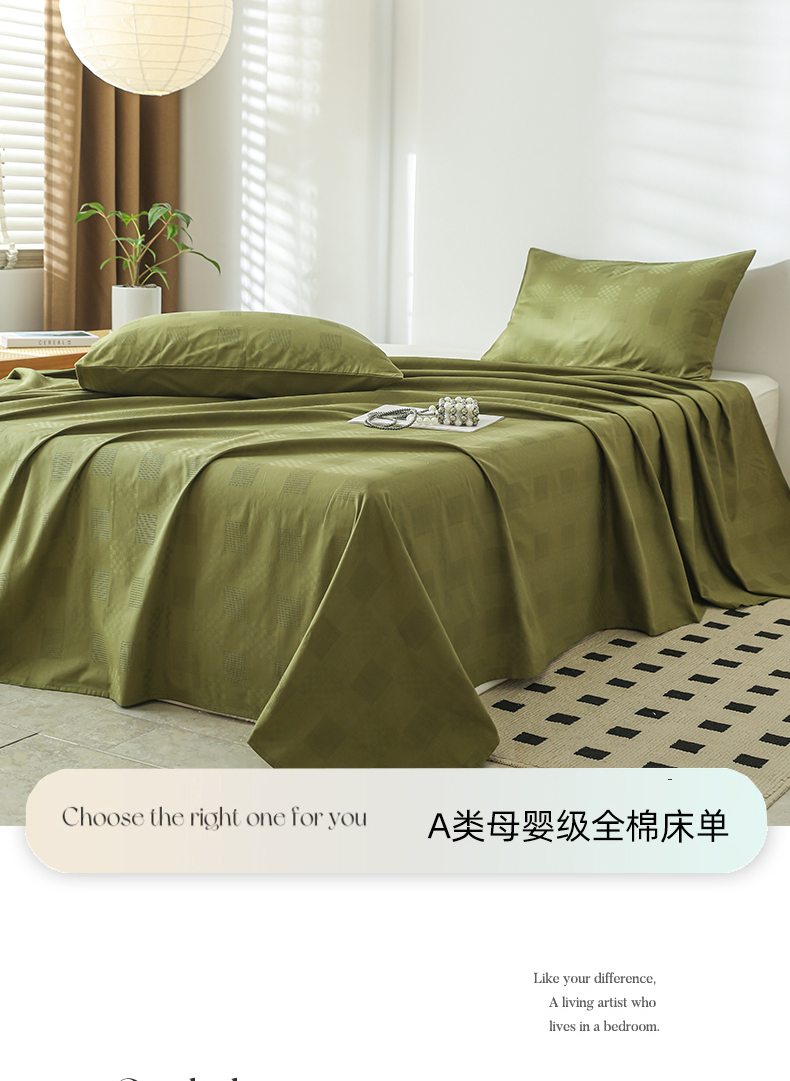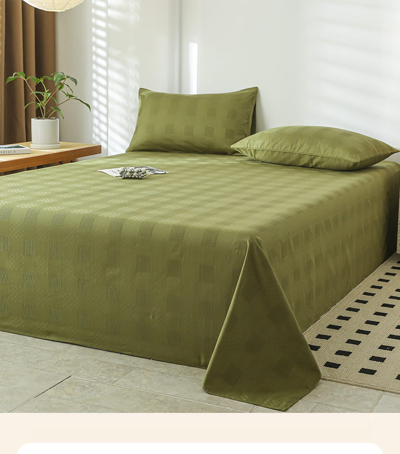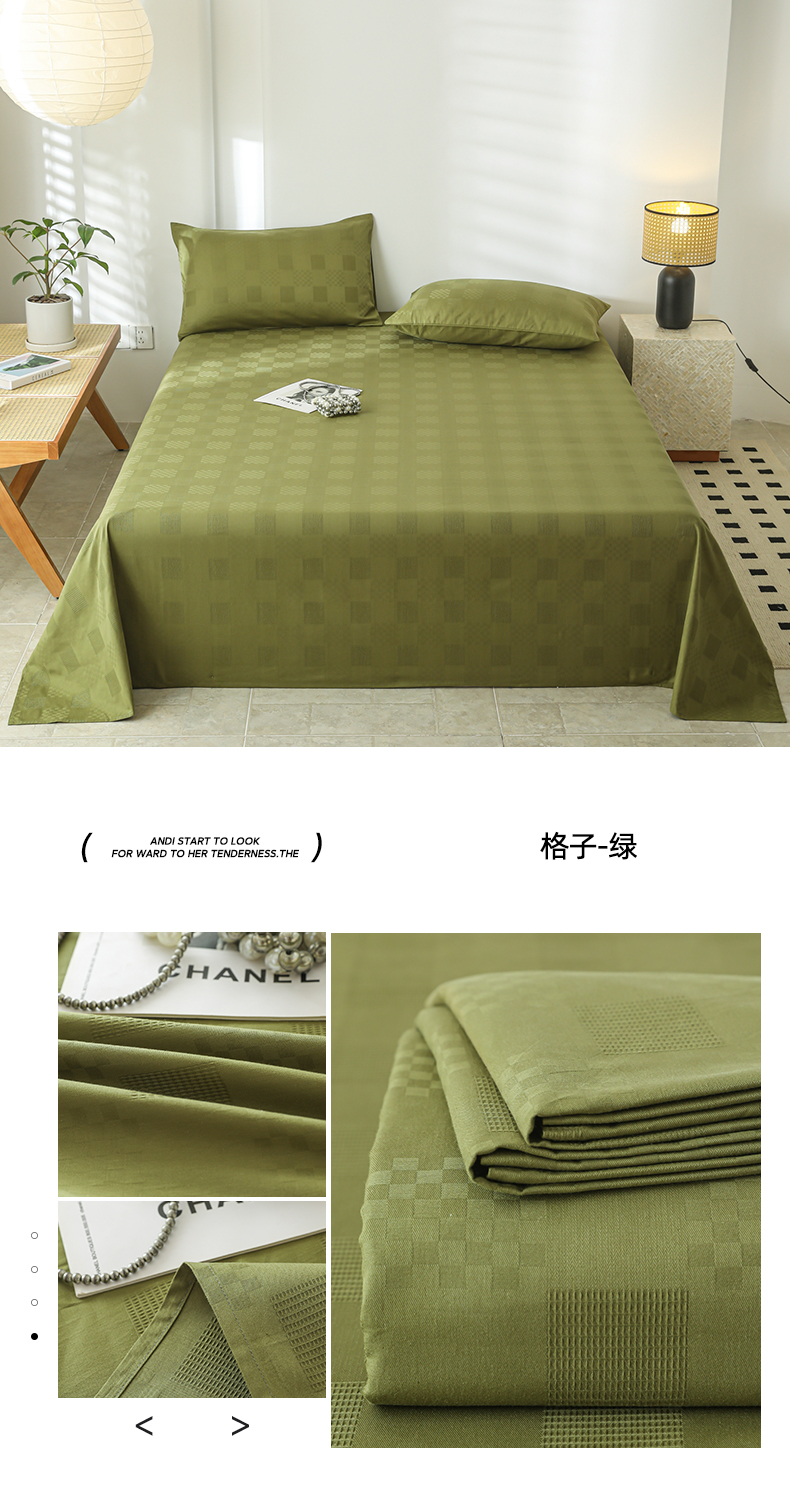 简宜家居(朝初家纺) 2025新款60支贡缎提花A版纯棉床单 格子-绿