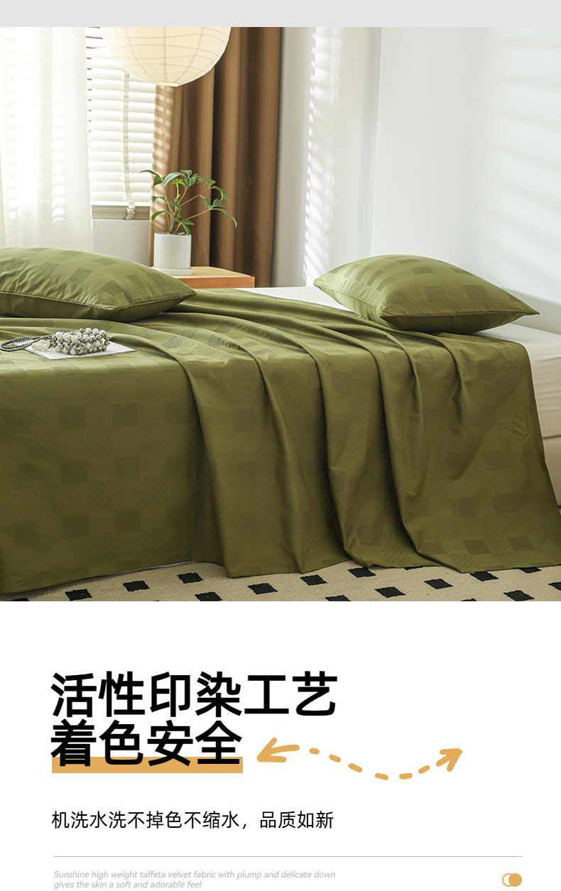 • 91家纺网 家纺一手货源 找家纺 简宜家居(朝初家纺) 2025新款60支贡缎提花A版纯棉床单 格子-绿