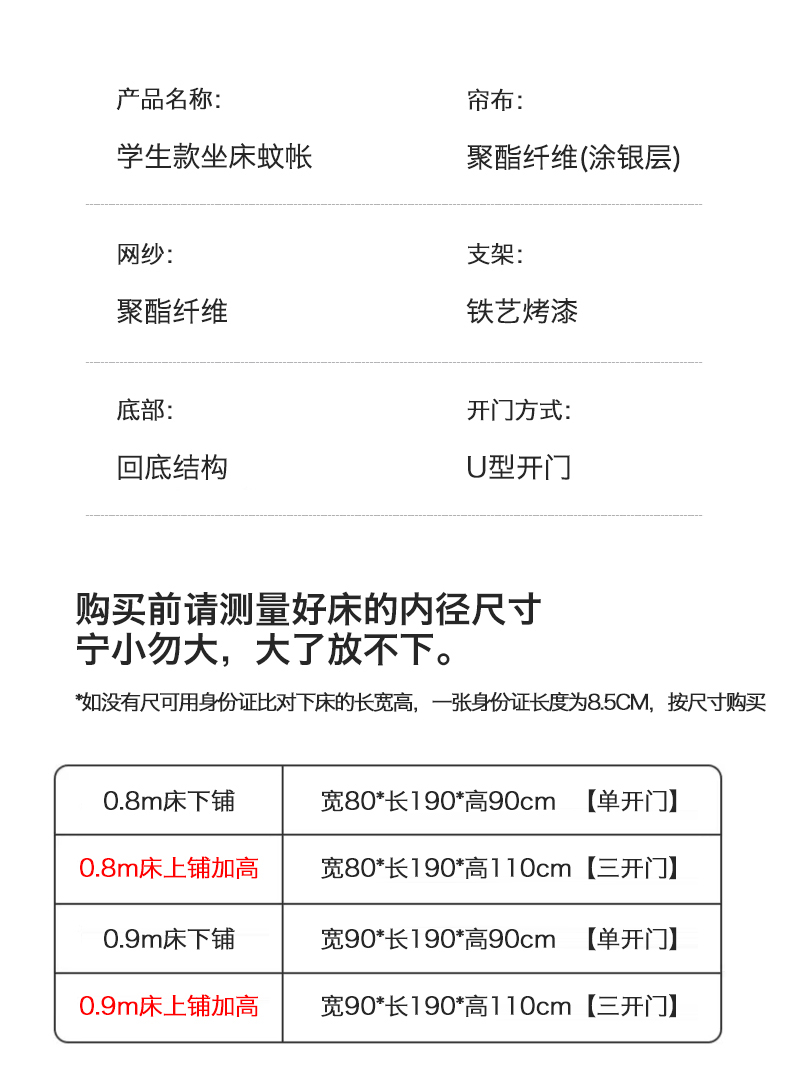 0.8m 上铺 免安装(一秒速装支架) | ¥110.00 |