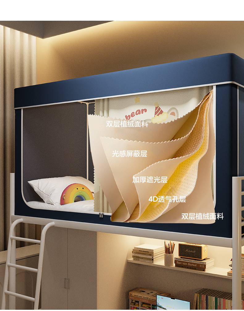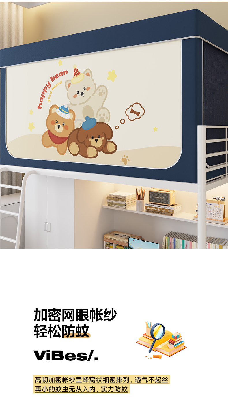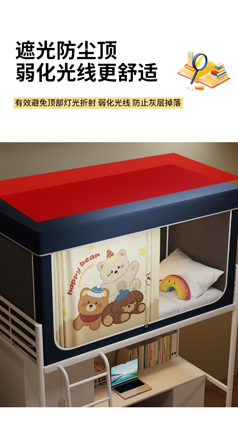 当前位置: 91家纺网 > 商品网购 > 床上用品 > 蚊帐 > 学生蚊帐 > 伊而梦蚊帐2025新款升级非涂层静电植绒环保加厚加密透气五面强遮光100%物理遮光大空间0.9/1.2m学生蚊帐 快乐小熊-深蓝