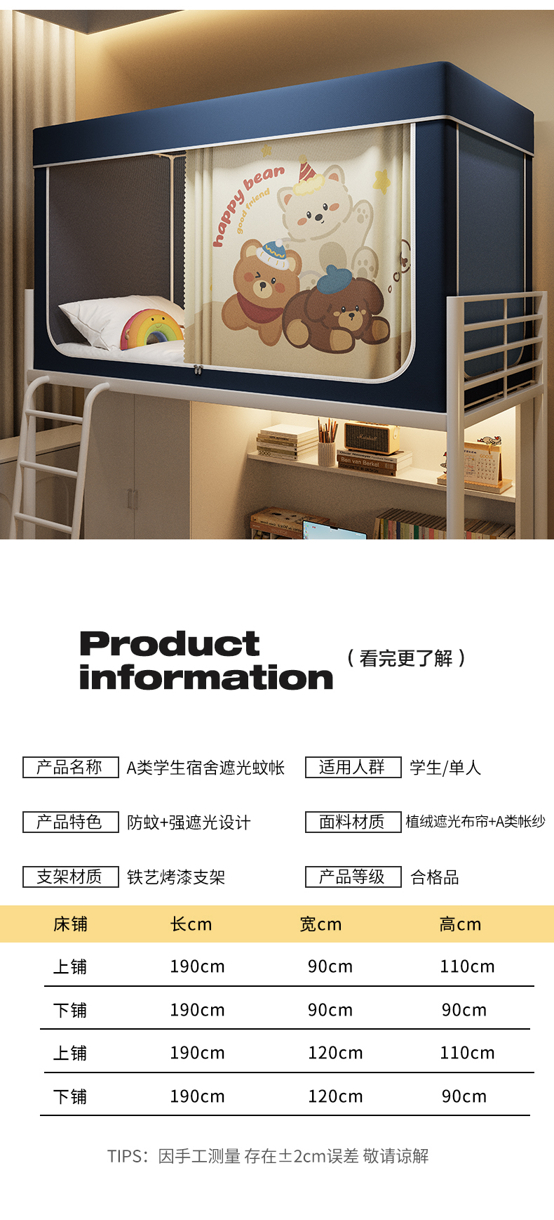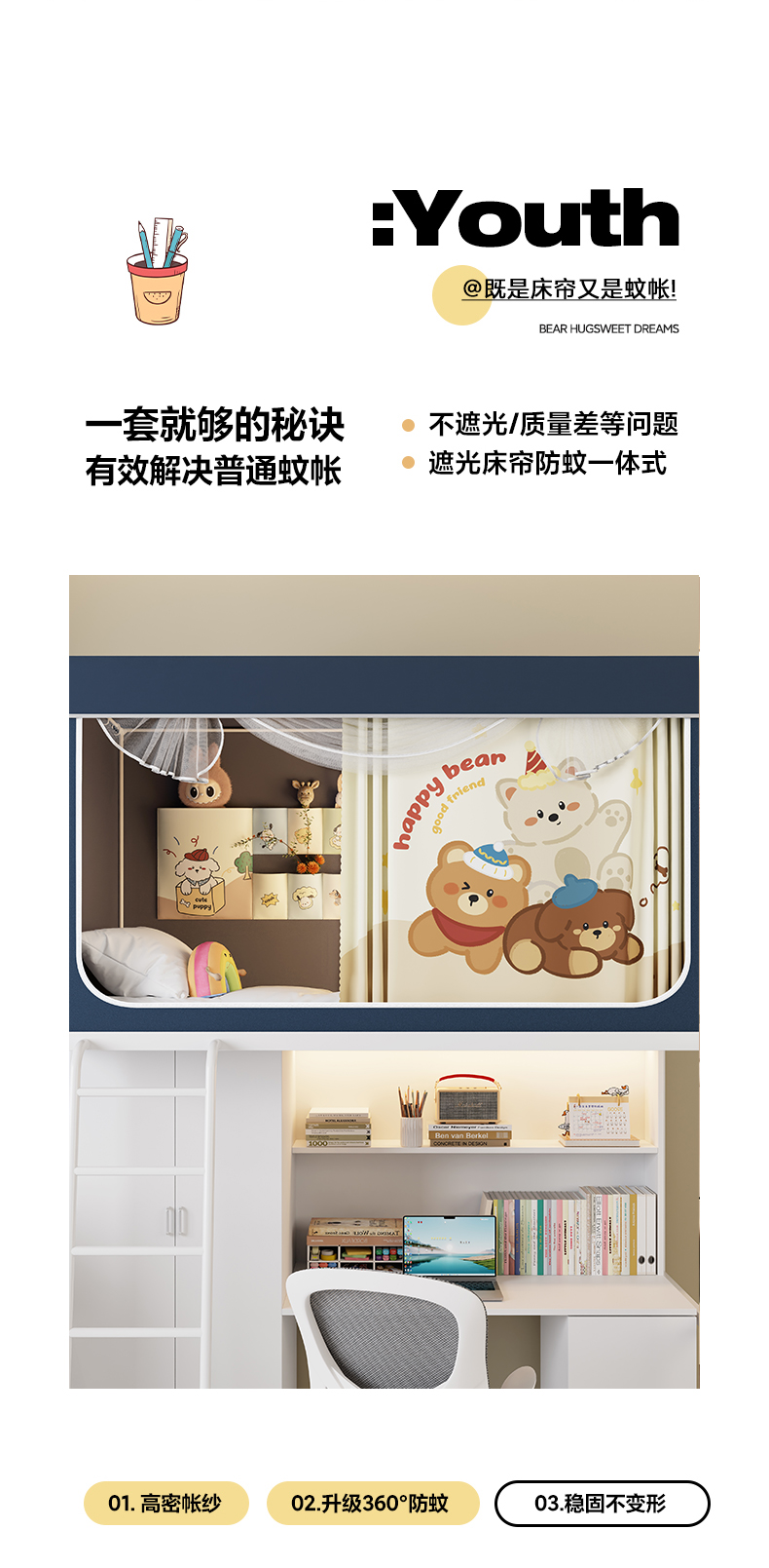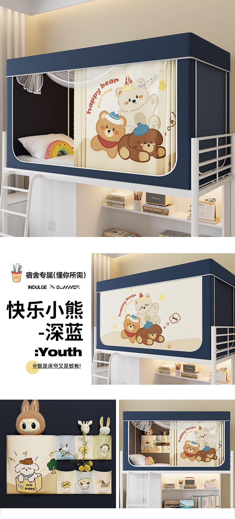 当前位置: 91家纺网 > 商品网购 > 床上用品 > 蚊帐 > 学生蚊帐 > 伊而梦蚊帐2025新款升级非涂层静电植绒环保加厚加密透气五面强遮光100%物理遮光大空间0.9/1.2m学生蚊帐 快乐小熊-深蓝