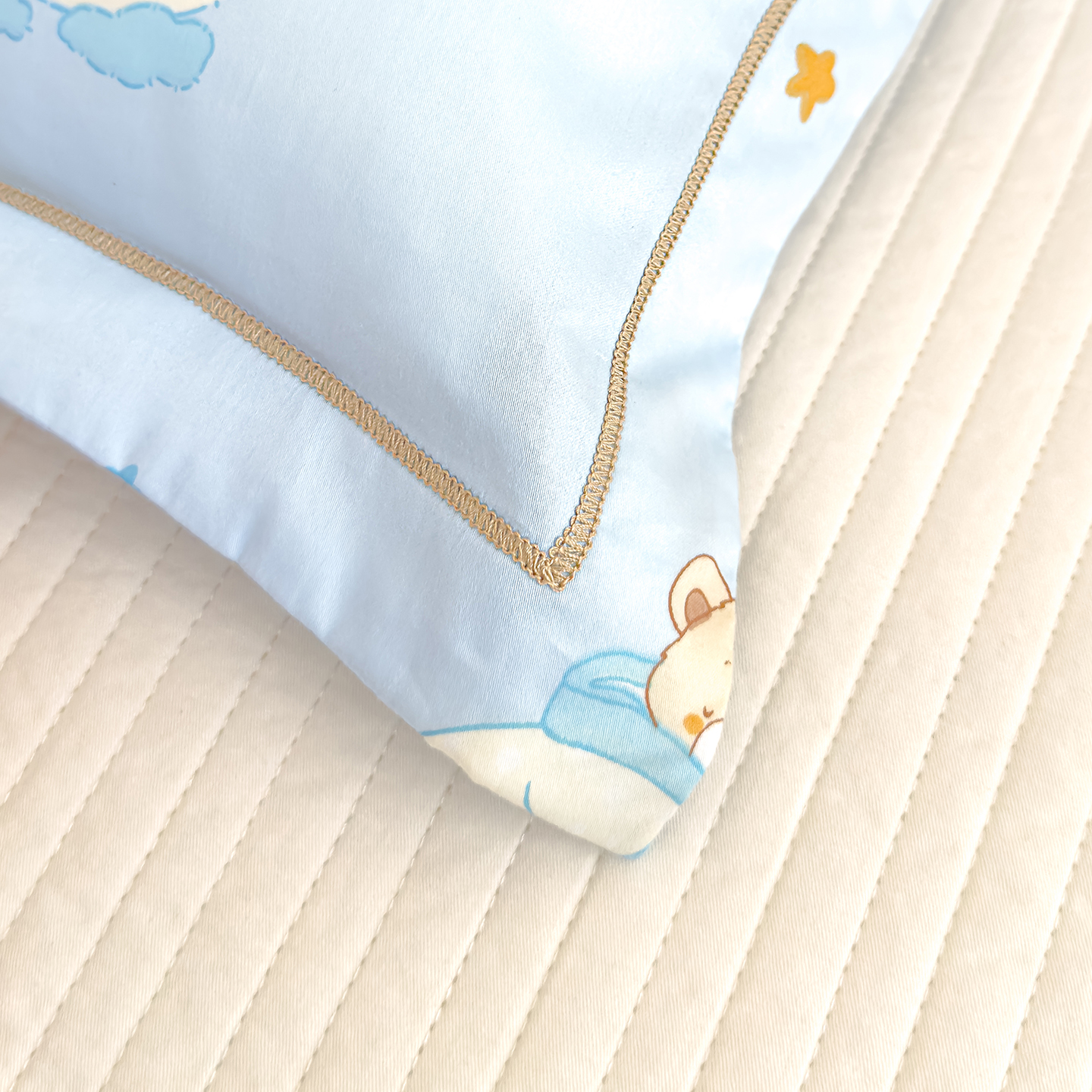 商品名称:良佐生活 2025新款A类60s全棉纯棉贡缎一字绣枕套 逐梦小熊