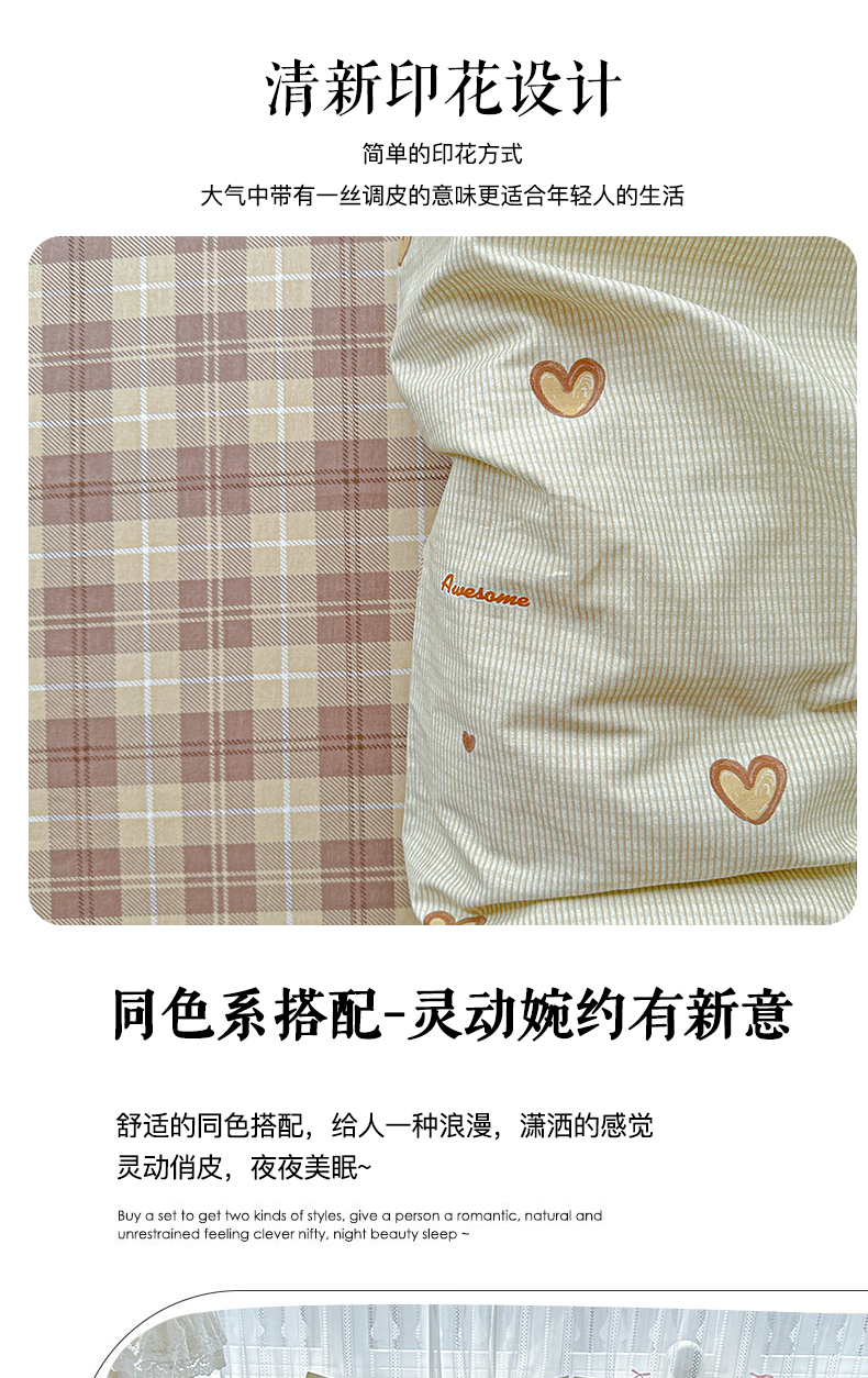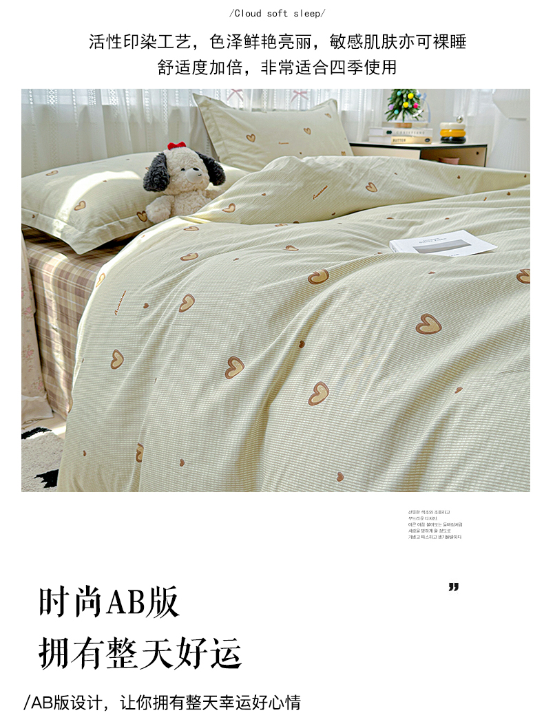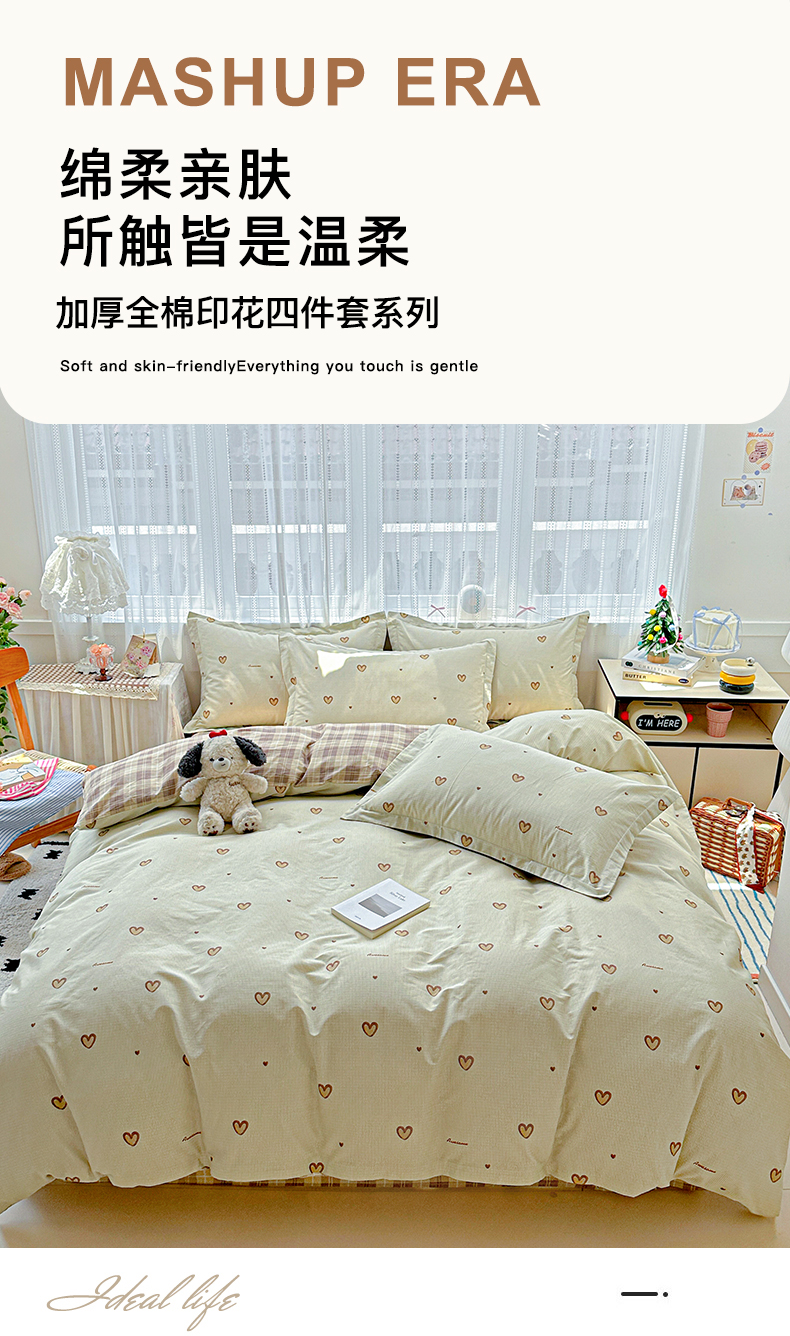 当前位置: 91家纺网 > 商品网购 > 床品套件 > 四件套 > 全棉普通四件套 > 恩泽家纺 2025新款全棉纯棉12868喷气印花系列四件套-第二批 初恋心