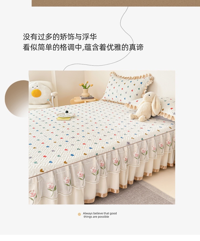商品名称:手艺人家纺 2025新款牛奶绒绗缝R01-R05单床裙 床裙单件 床裙R05