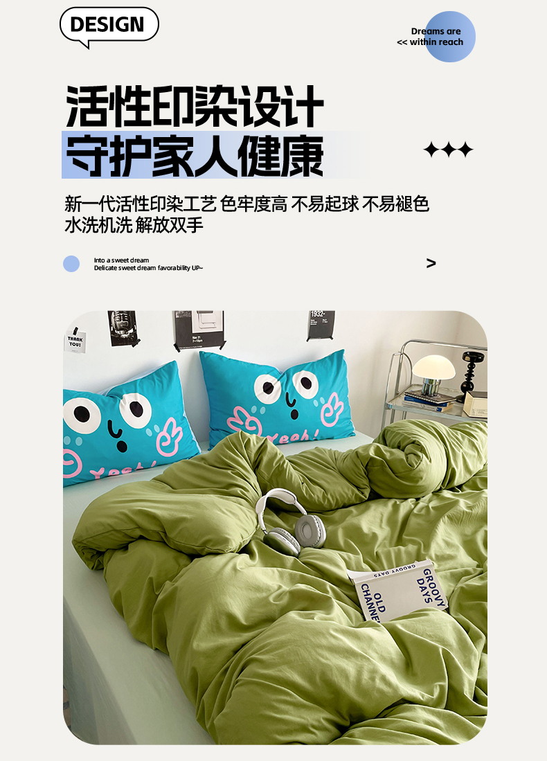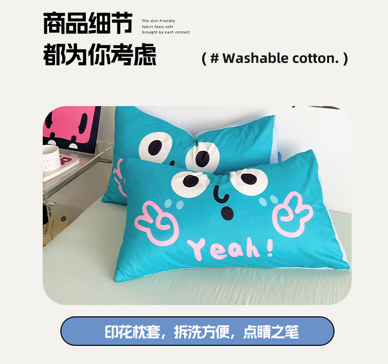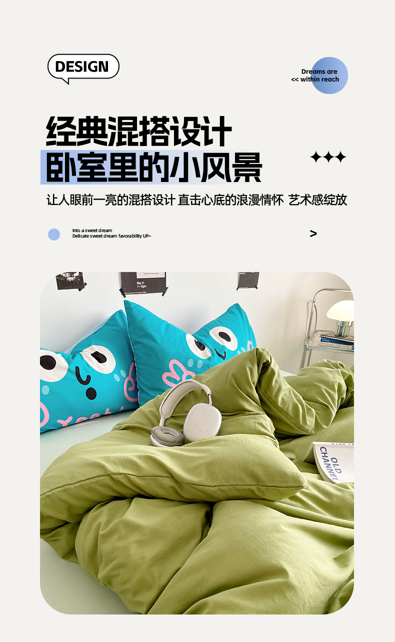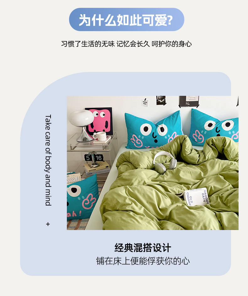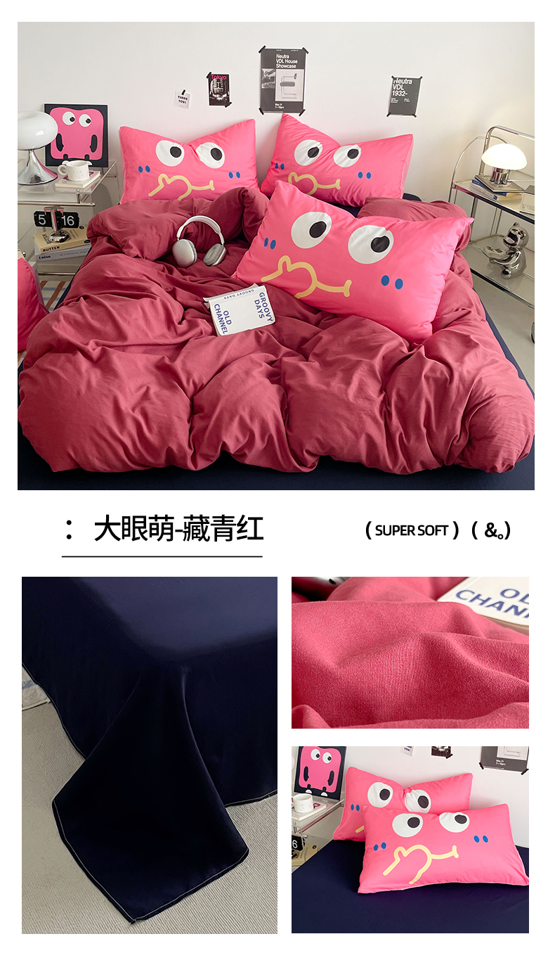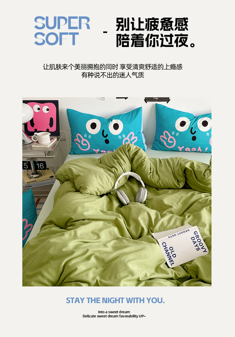 当前位置: 91家纺网 > 商品网购 > 床品套件 > 四件套 > 水洗棉四件套 > 优卡迪家纺馆 2025新款A类亲肤水洗棉大眼萌纯色混搭四件套 大眼萌-浅绿茶