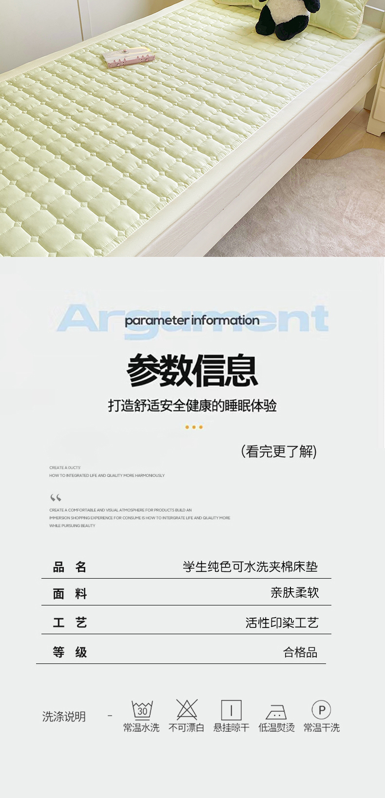 当前位置: 91家纺网 > 商品网购 > 床垫/床褥 > 普通床垫 > 麒东家纺 2025新款学生纯色水洗棉夹棉床垫 奶油