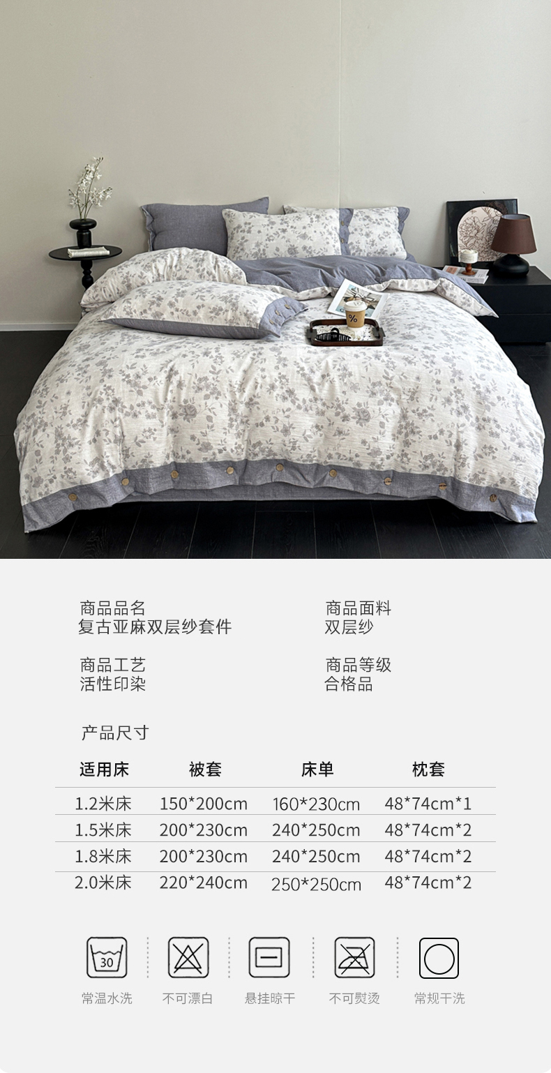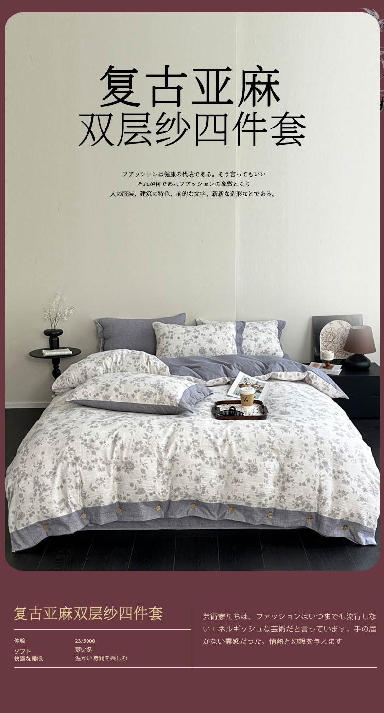 商品名称:漫仙阁家纺 2025秋冬新品加厚高克重复古风双层纱印花四件套 花之舞