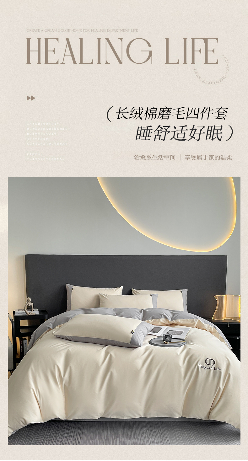 当前位置: 91家纺网 > 商品网购 > 床品套件 > 四件套 > 长绒棉四件套 > 桃园 长绒棉纯棉不掉毛磨毛四件套-莫兰迪 高端礼盒 莫兰迪-白灰色