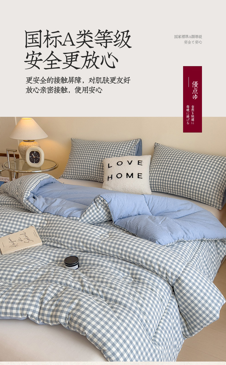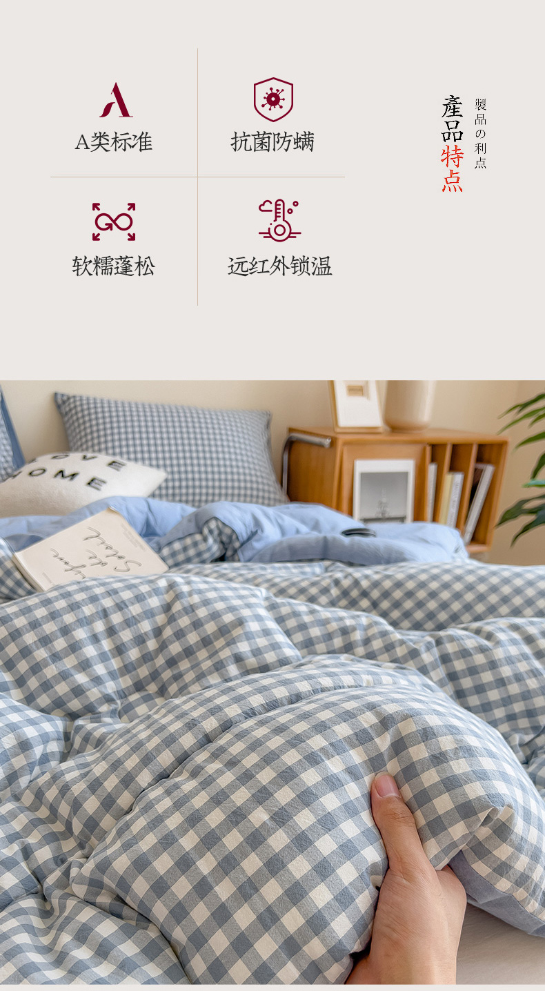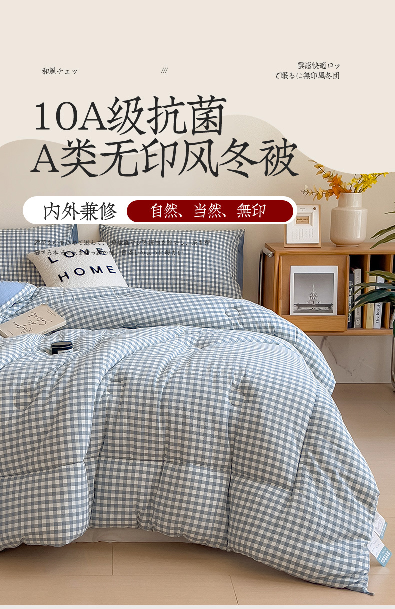 • 91家纺网 家纺一手货源 找家纺 宝士康家纺 2025新品10A抗菌无印风学生季春秋被/被芯/跨境/外贸 天蓝小格