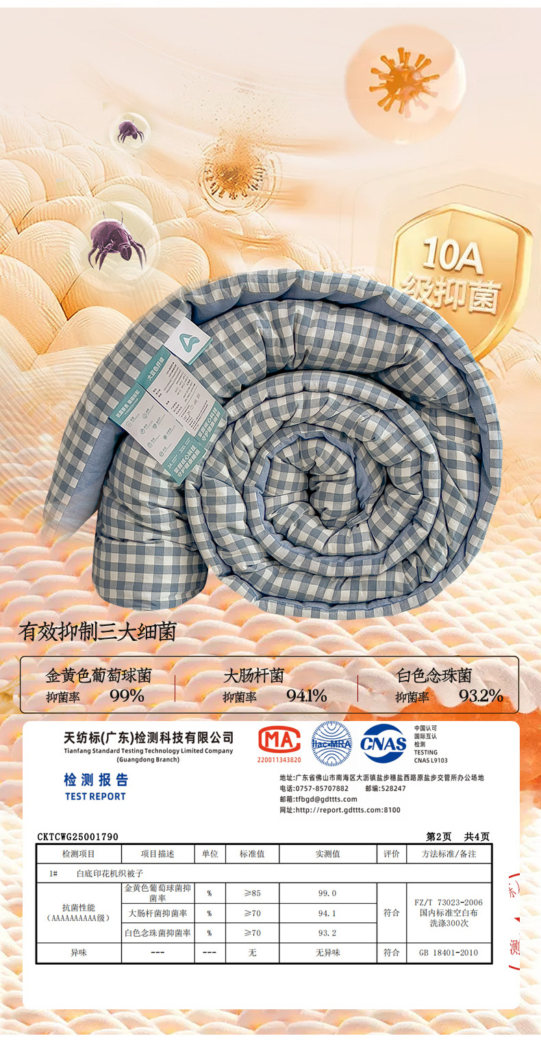 当前位置: 91家纺网 > 商品网购 > 被子 > 棉被 > 宝士康家纺 2025新品10A抗菌无印风学生季春秋被/被芯/跨境/外贸 天蓝小格
