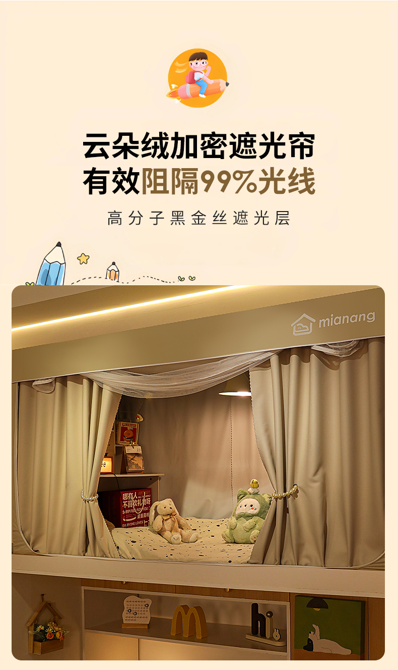 当前位置: 91家纺网 > 商品网购 > 床上用品 > 蚊帐 > 学生蚊帐 > 卓尔居 2025新款强遮光学生宿舍上下铺遮光蚊帐床帘-遮光大师 蓝灰