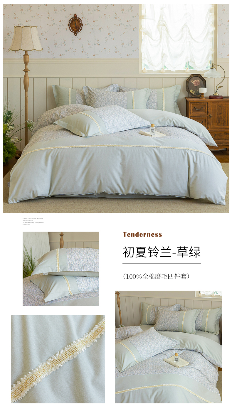 当前位置: 91家纺网 > 商品网购 > 床品套件 > 四件套 > 全棉普通四件套 > 巧玲珑 2025新款织带花边工艺款四件套-初夏铃兰 初夏铃兰-草绿