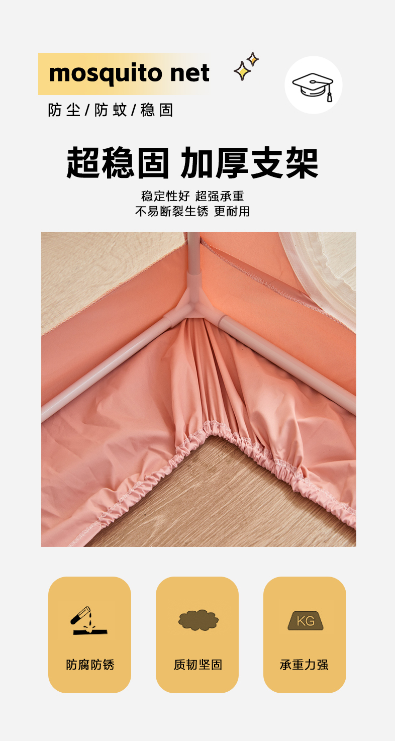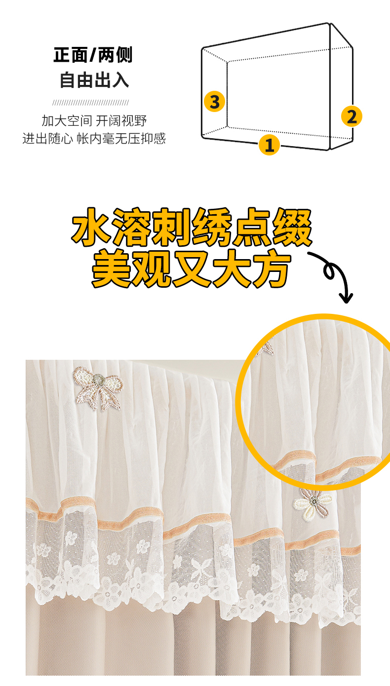 (总)2025新款双层花边全包围床笠款三开门蚊帐-幽梦星辰,奶黄,藕玉,颜淡蓝