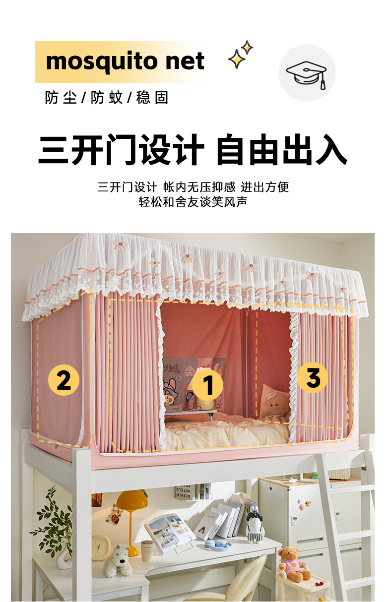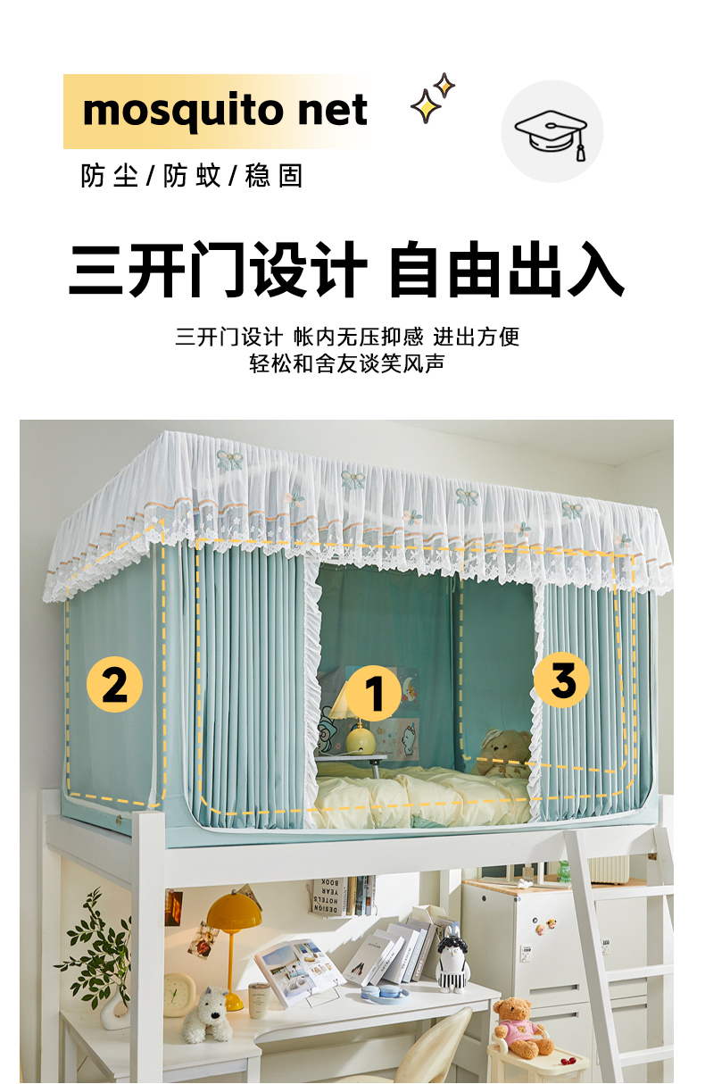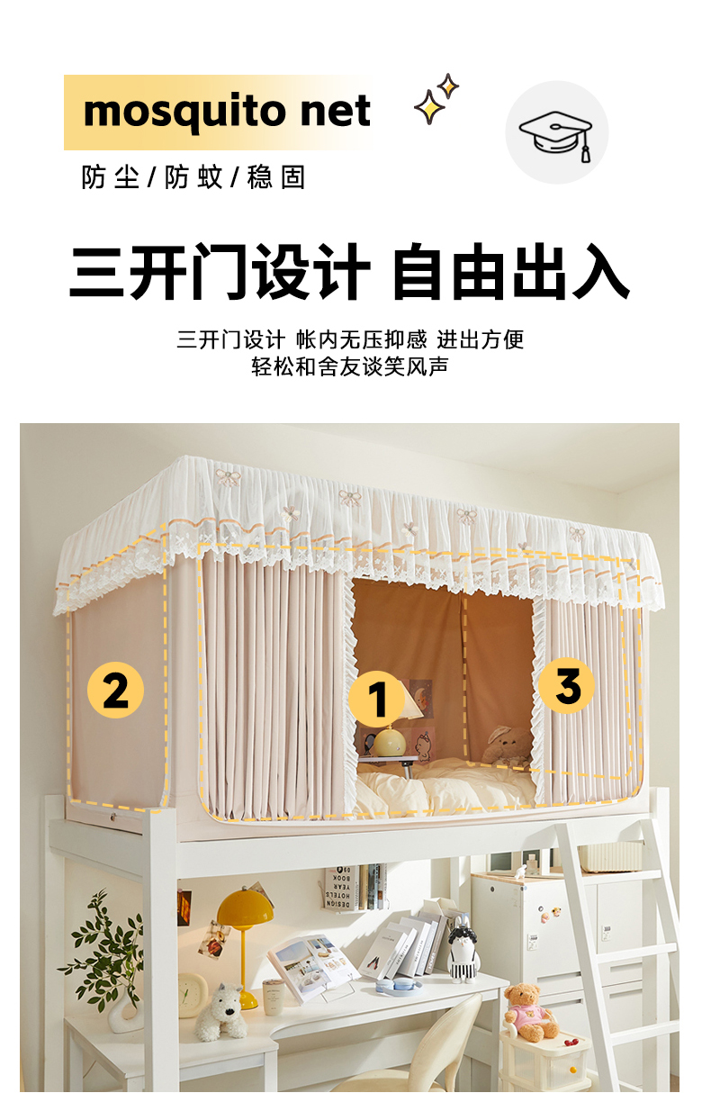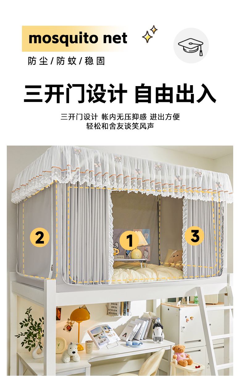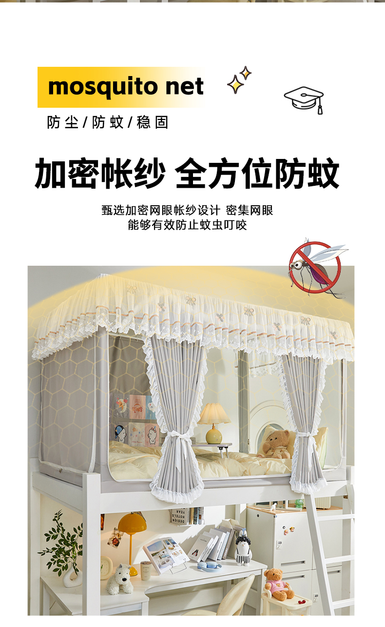 (总)梦尔佳蚊帐2025新款学生宿舍遮光床帘蚊帐,花间絮语米黄,花间絮语玉色,奶熊眠眠,甜结梦语灰,甜结梦语奶白