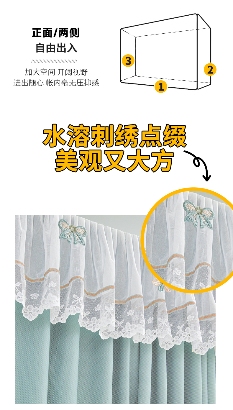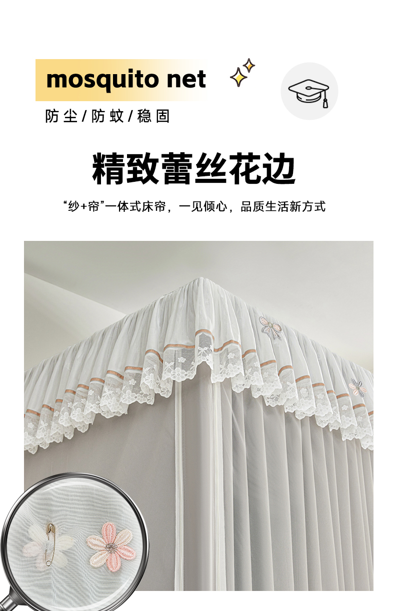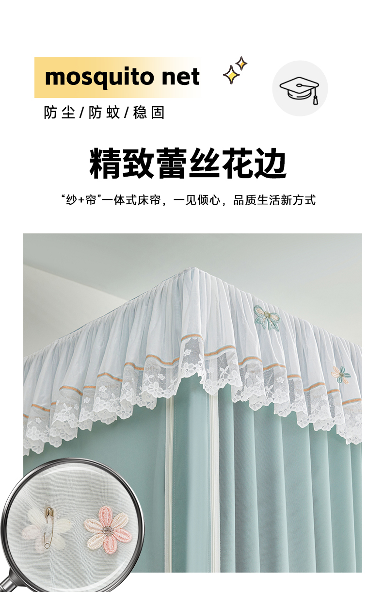(总)梦尔佳蚊帐 2024新款学生遮光花边款蚊帐-美好明天,美好明天-淡蓝,美好明天-沫绿,美好明天-奶白,美好明天-奶黄,美好明天-藕玉,美好明天-雅灰